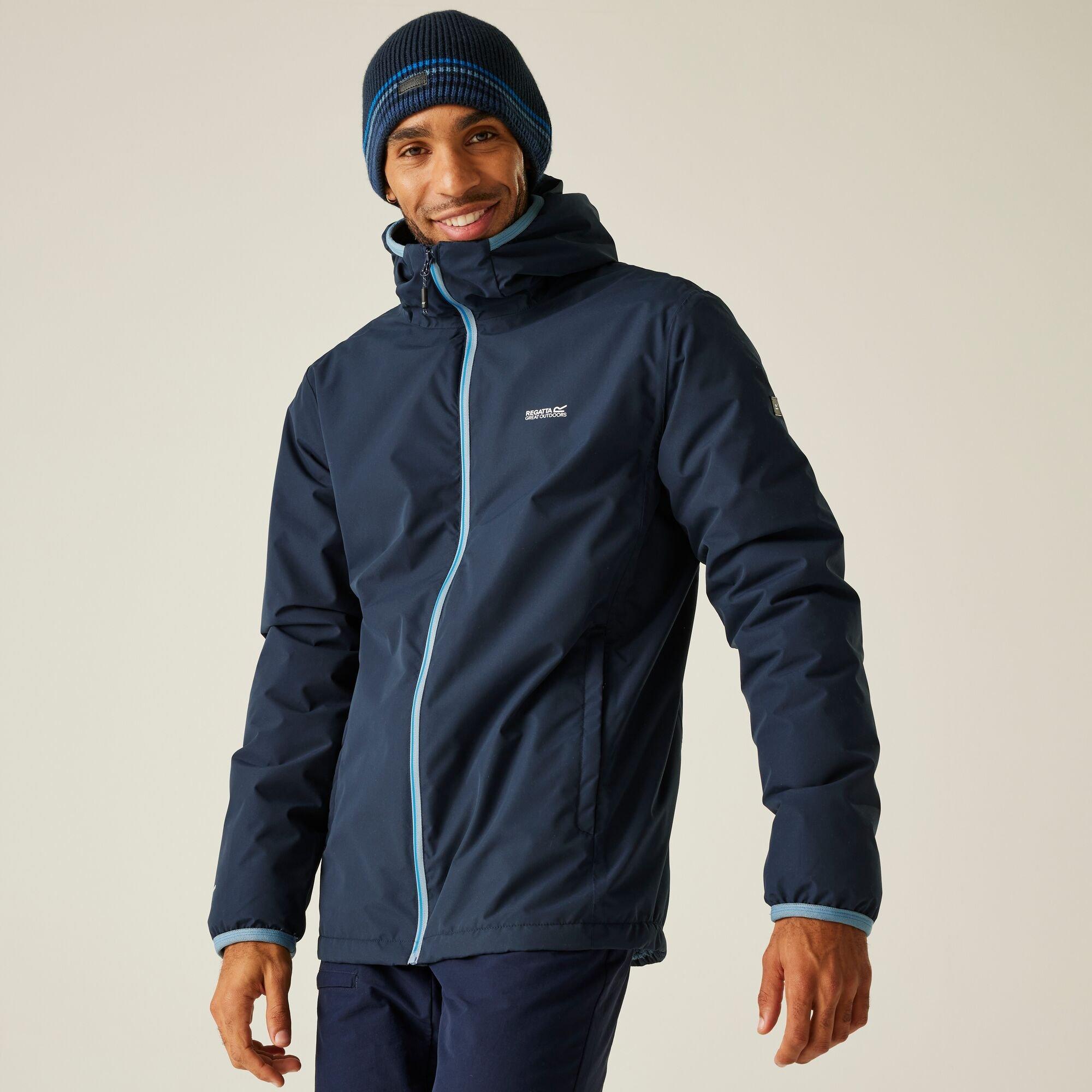 The Caspen men's waterproof jacket from Regatta is crafted for outdoor protection in unpredictable weather. Made with breathable Isotex 10,000 fabric and taped seams, it offers complete weatherproofing. Warmloft insulation and a borg fleece lining provide warmth, while an adjustable hood and zipped pockets add practicality. Perfect for outdoor adventures.Waterproof breathable Isotex 15000Breathability rating 15,000g/m./24 hoursDurable water repellent finishRecycled synthetic Warmloft down-touch insulationInsulation weight - 60gsmTaped seams for complete waterproof protectionBorg fleece linedInternal zipped security pocketGrown on hood with rear adjusterCentre front zip with drainage channel2 lower zipped pocketsStretch binding to hood and cuffsMade with recycled content