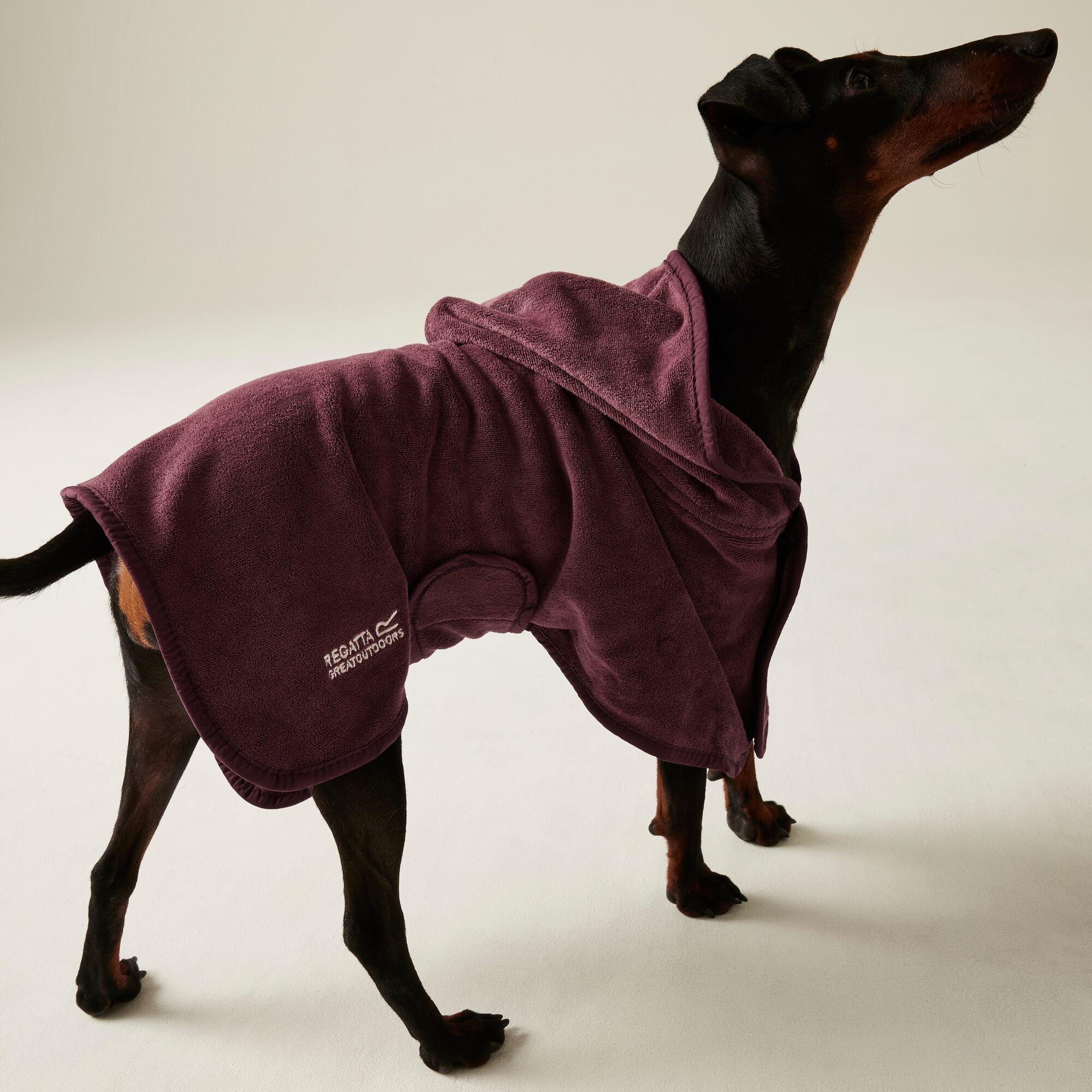 The Dog Drying Coat from Regatta. Protect your pooch in cold weather. The coat is quick drying and moves sweat to the surface to keep your four-legged friend feeling fresh. An adjustable hook and loop strap provides a secure fit.
