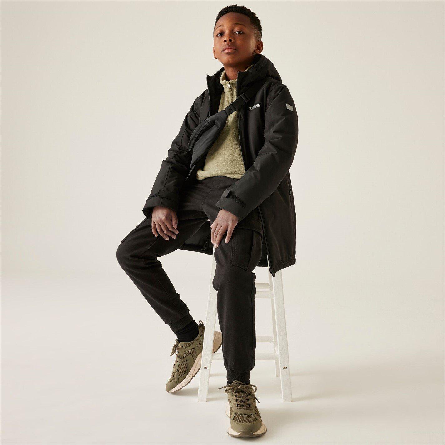 The Farbank II boys' jacket from Regatta is a cosy, protective layer for outdoor adventures. Made with waterproof, breathable Isotex 10,000 fabric, it features taped seams, Warmloft insulation and a sherpa-lined hood for warmth. Reflective trims and patch pockets add practicality.Waterproof breathable Isotex 10000Breathability rating 10,000g/m./24 hoursInsulation weight - 180gsmRecycled synthetic Warmloft down-touch insulationDurable water repellent finishTaped seams for complete waterproof protectionSoft and cosy sherpa hood liningGrown on hood with fixed drawcord detail2 lower patch pocket with concealed stud closureAdjustable cuffs with hook and loop fasteningAdjustable shockcord hem360 reflective trimsPrinted name label (up to age 8)Made with recycled content