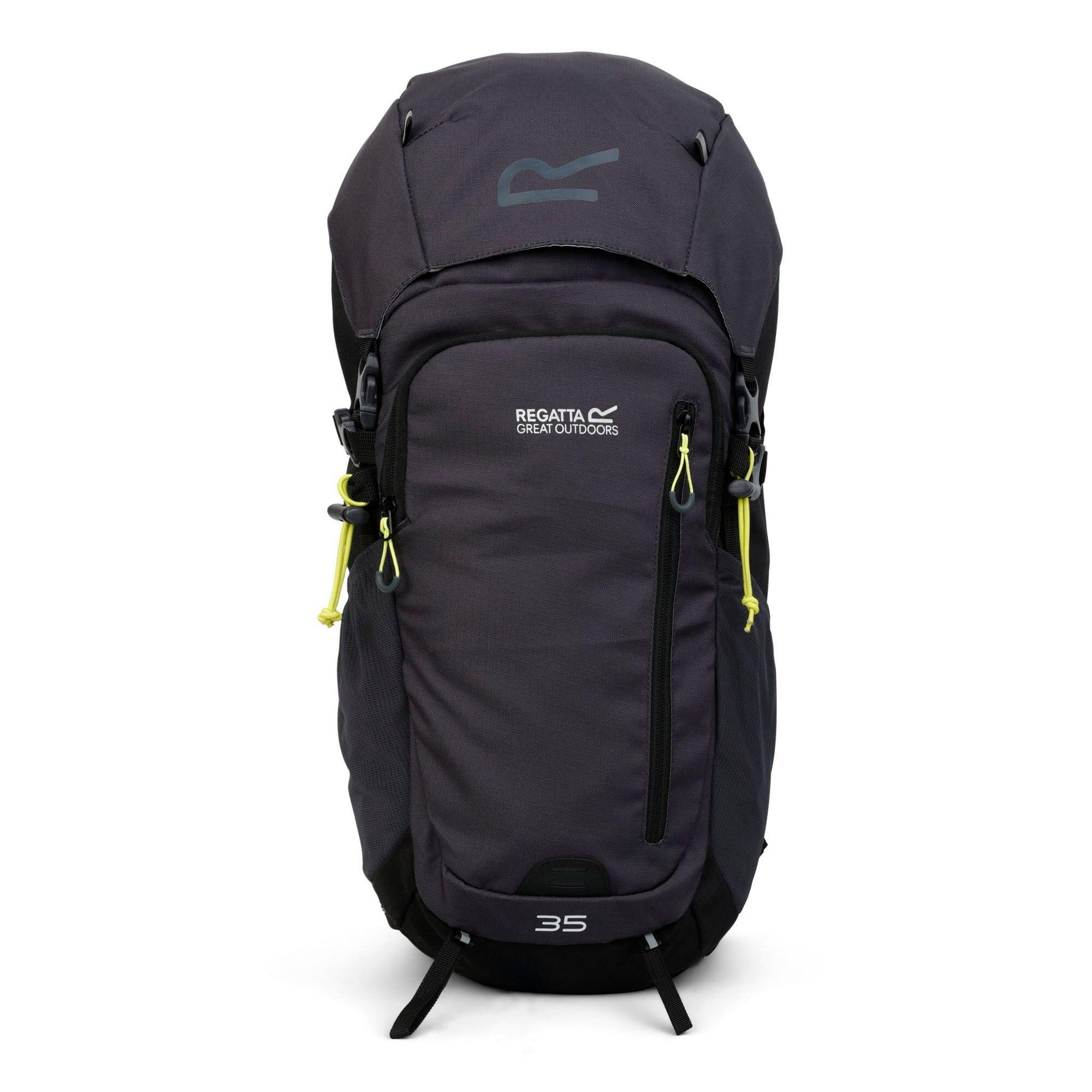 The Highton V2 35L backpack from Regatta is a hiker's essential. You'll stay comfy and fresh thanks to the padded shoulder straps and air mesh back panel. When on long hikes, the internal hydration pocket and drinking tube retainer come in handy. There's ample room for overnight hikes and camping adventures. Finished with a detachable rain cover.Durable 600d polyester fabric Durable water repellent finish Top lid design with large zipped pocket Padded Air Mesh back panel with Streamair ventilation system Adjustable padded Air Mesh hip belt to help stabilise pack weight Padded shoulder straps Adjustable sternum strap Side compression straps Adjustable load lifter straps Internal hydration pocket and drinking tube retainer Zipped side pocket 2 stretch mesh side pockets Reflective details for enhanced visibility Detachable raincover