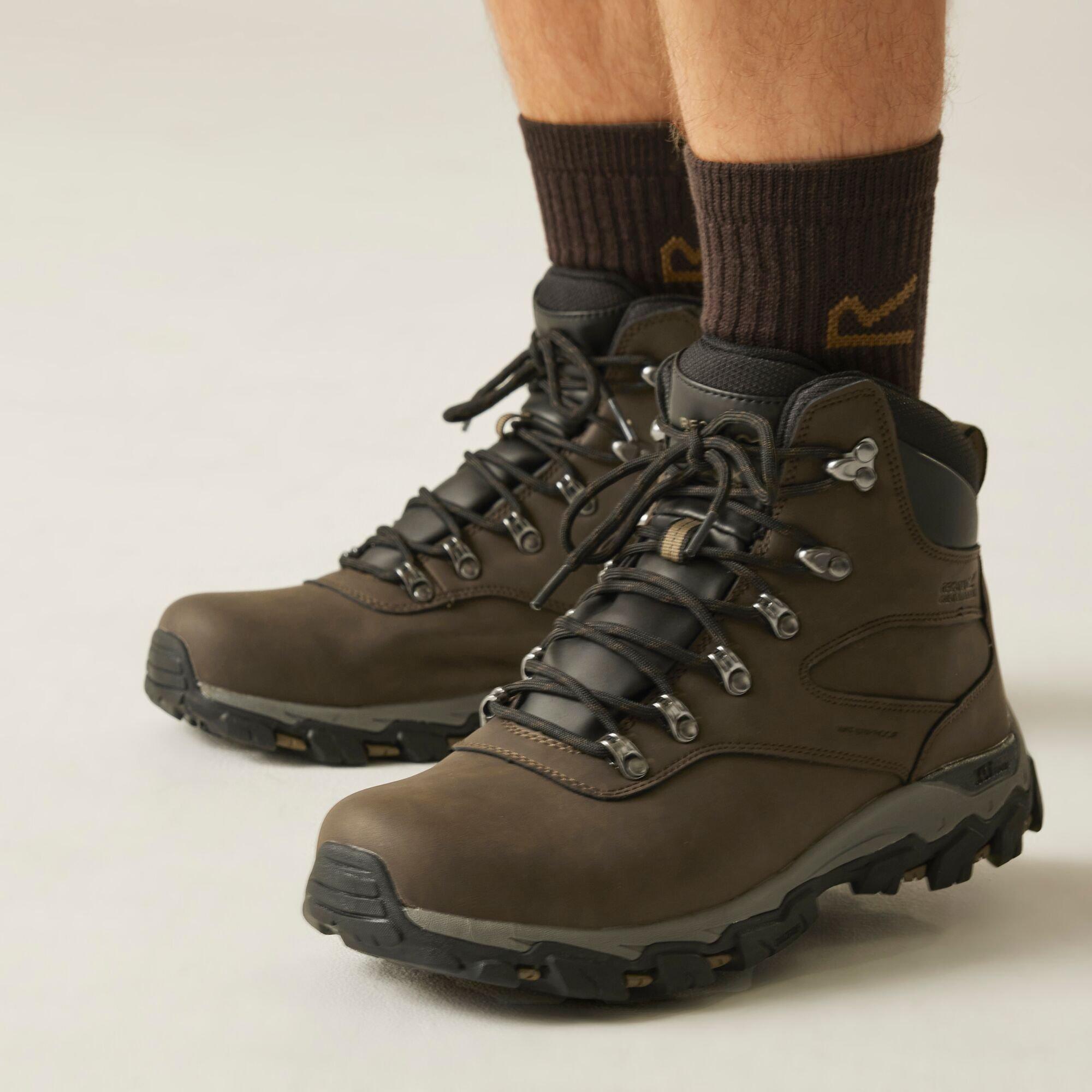 The Holcombe Classic men's hiking boots from Regatta are made for adventure. The synthetic leather is comfy and durable and is supported by a mid-cut collar to the ankle that's perfect for ankle support. You'll have comfort with every step thanks to the padded foam collar and tongue, TECFOAM openfoam insock and breathable ISOTEX membrane. Protection is delivered with the heel strike cushioning to the midsole that minimises impact. The men's walking boots are finished with a Duo Grip outsole for superior traction. Perfect for hiking, climbing mountains and exploring new trails.