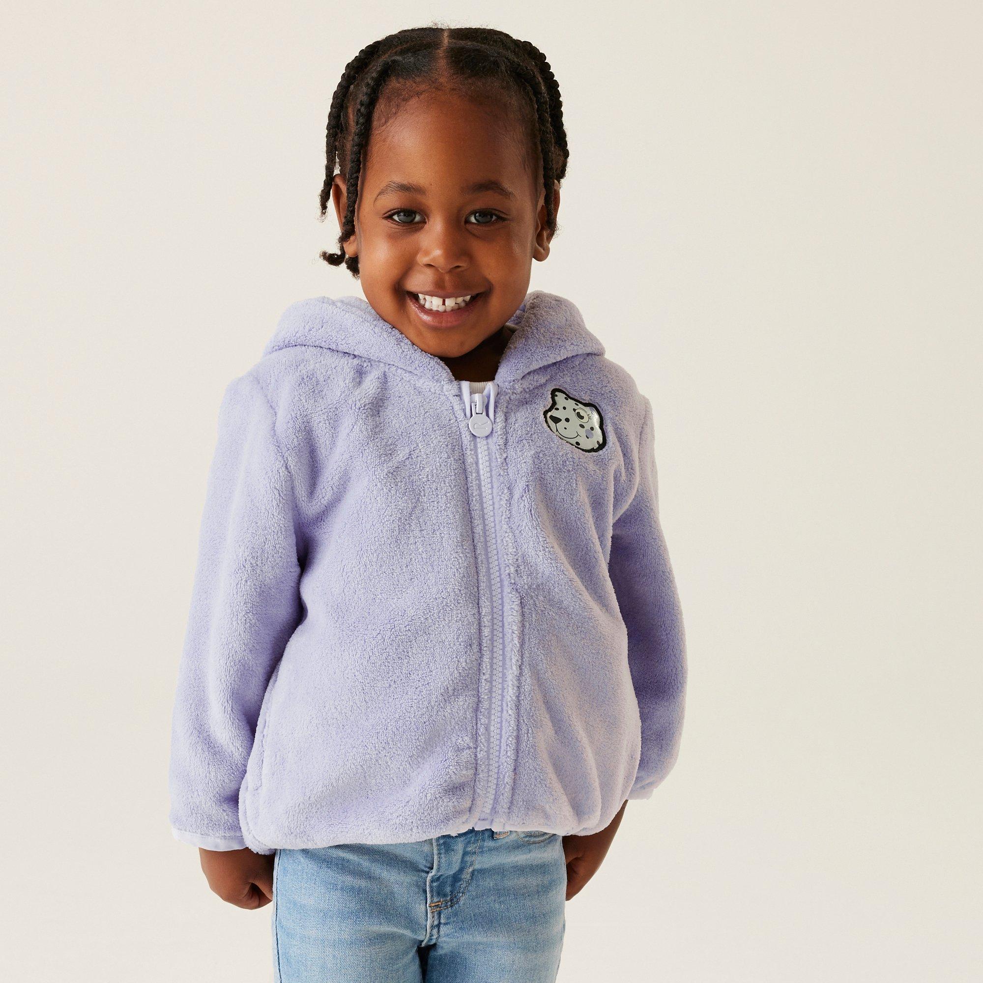The kids' animal fleece from Regatta serves as the ideal layer for little adventurers. The short pile fluffy fleece ensures both warmth and comfort for your little adventurers. The stretch binding at the cuffs and hem guarantees a snug fit, keeping the chill at bay. Adding an extra touch of charm, the fleece features adorable animal character ears and a character chest badge that little ones are sure to love. Short pile fluffy fleece - 230gsmAnimal character ears on grown on hoodEmbroidered applique character chest badgeStretch binding to cuffs & hem