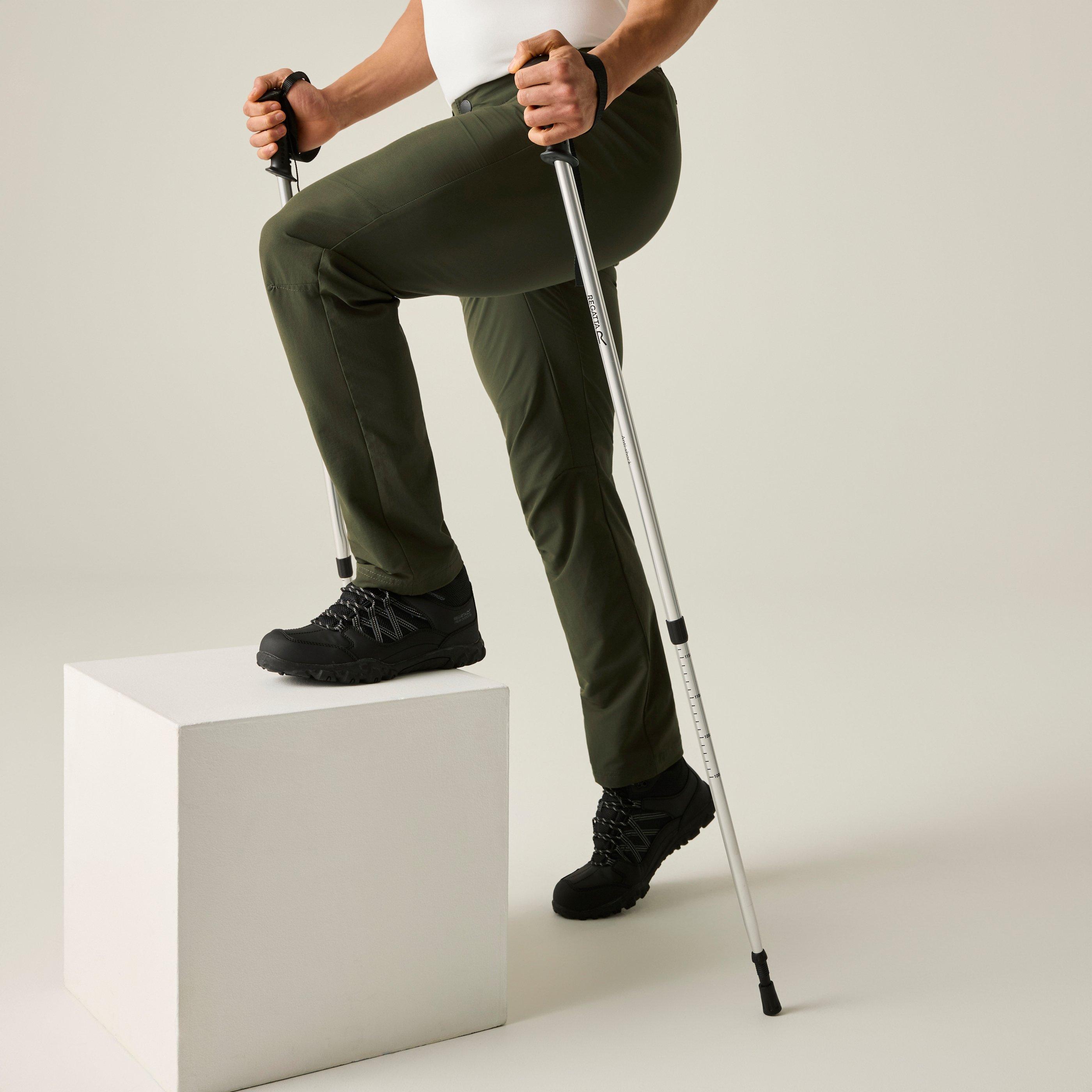 The Highton II men's hiking trousers from Regatta combine practicality and comfort. They're made from ISOFLEX Active stretch fabric and feature an articulated knee design for ultimate flexibility. These men's walking trousers feature a durable water-repellent finish, perfect for changeable weather. The hiking bottoms come with a part-elasticated waist for comfort and multiple pockets for your on-the-go essentials. Available in Short, Regular and Long leg lengths. ISOFLEX - active stretch fabric - 94% recycled polyamide 6% elastane - 145 gsm Made with recycled contentDurable water repellent finishUV Protection fabric (UPF) 50+Part elasticated waistMulti pocketed with zipped side pocketsArticulated knee design for an enhanced range of movementAvailable in short, regular and long leg lengths
