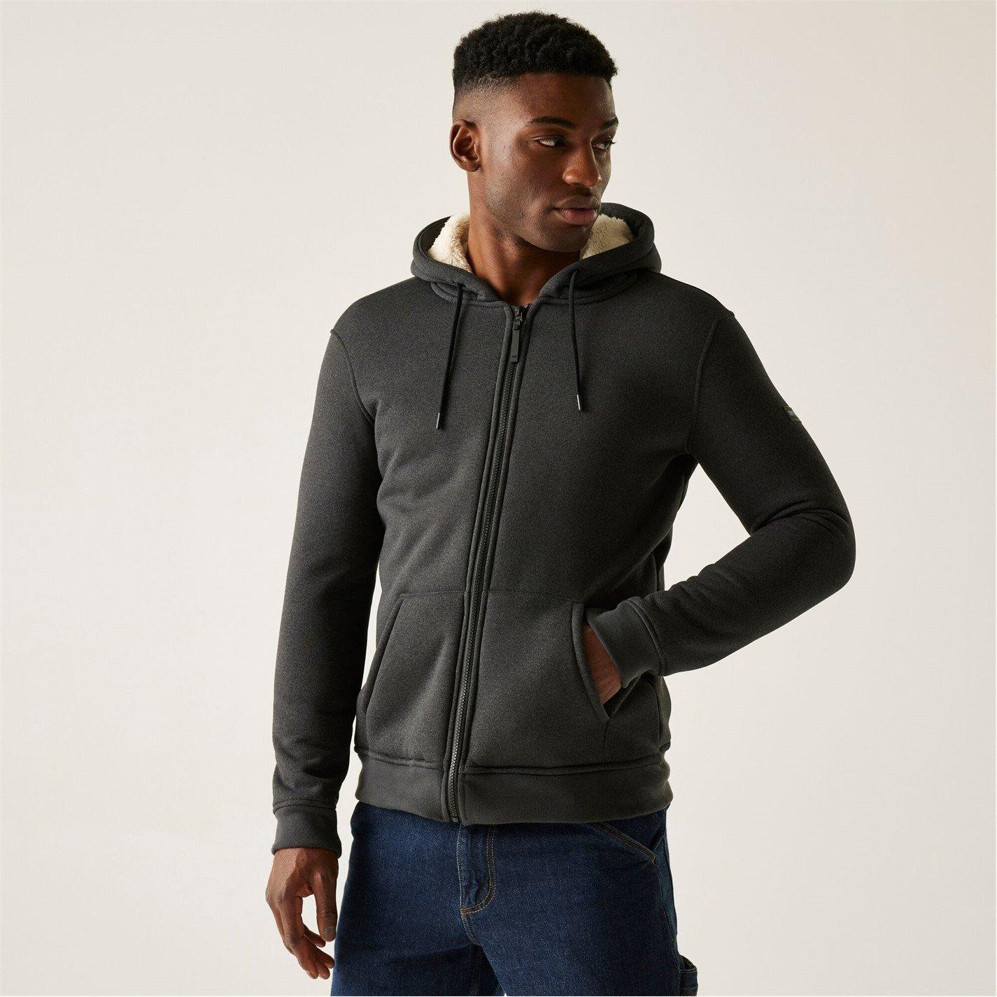 The Naddle men's hoodie from Regatta offers casual warmth and comfort. Jersey bonded with fluffy fleece provides softness, while a grown-on hood with drawcords and ribbed cuffs ensures a relaxed fit. The zip-through design makes it perfect for layering.Grown on hood with drawcordsCentre front full zipRibbed cuffs and hem