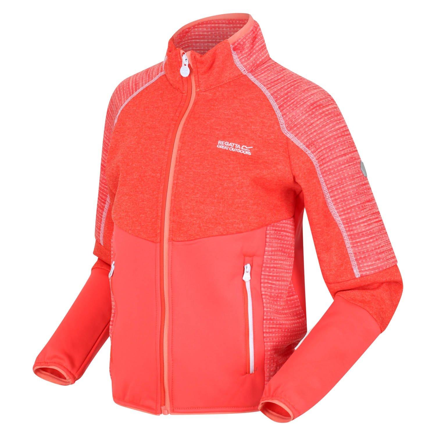 The Oberon V kids' jacket from Regatta is just the thing for weekends in the hills and blustery beach walks. The kids' stretch jacket features Extol stretch warm-backed fabric providing comfortable movement whilst withstanding the rough and tumble of adventure. With stretch binding to the collar cuffs and hem you'll stay warm in cold or blustery conditions. The full zip allows for easy wear and extra ventilation. The zip pockets provide storage space for your belongings.