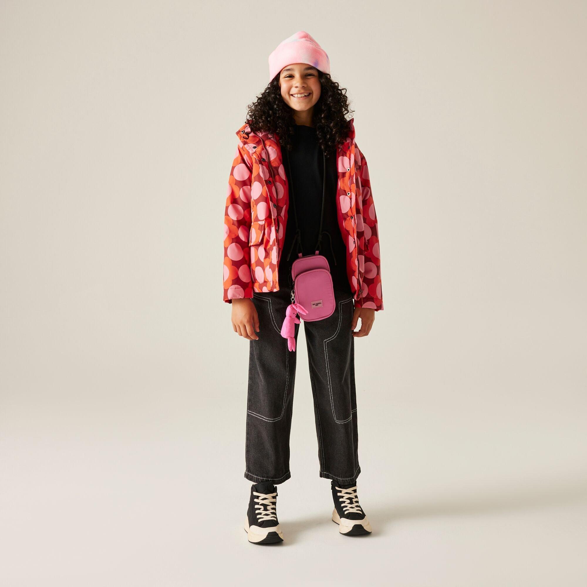 The Orla girls, waterproof jacket from Regatta is a warm, stylish choice for rainy adventures. Made with Isotex 10,000 fabric, it provides full waterproof protection, while Thermoguard insulation ensures cosy warmth. Showcasing Orla Kiely,s iconic prints, it features a grown-on hood and multiple pockets for practicality, keeping little adventurers dry in style.Waterproof breathable Isotex 15000Breathability rating 15,000g/m./24 hoursDurable water repellent finishRecycled Thermoguard insulationInsulation weight - 120gsmTaped seams for complete waterproof protectionMix of plain and printed liningsGrown on hood2 chest welt pockets2 lower patch pocketsMade with recycled contentAll over prints designed by Orla Kiely