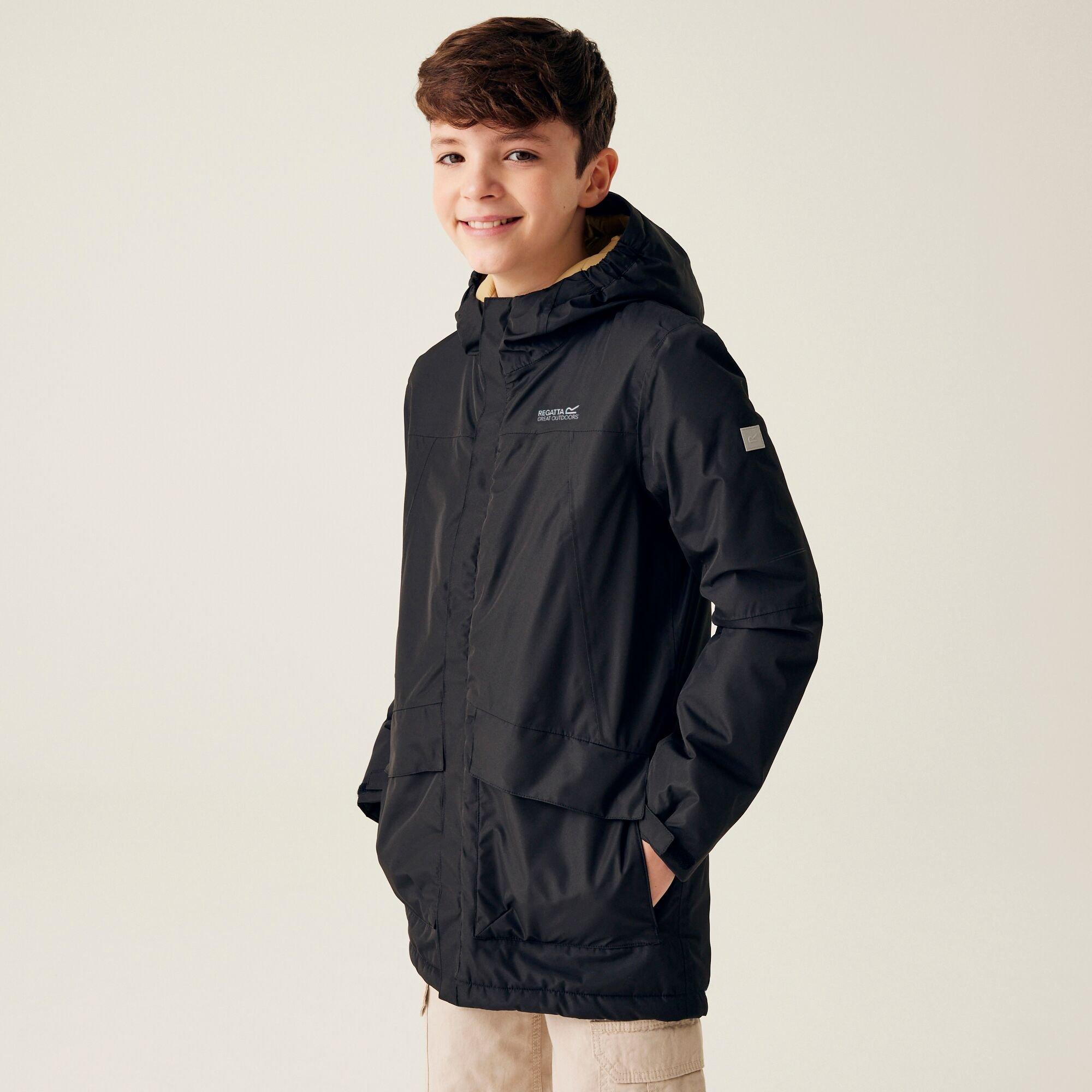 Regatta's Unisex Kids Farbank Isotex Insulated Waterproof Jacket keeps children and youth protected from the elements. This junior outerwear features advanced Isotex 5000 technology and Warmloft insulation, making it an ideal raincoat with reliable weatherproof protection and reflective trim for added visibility during adventure-filled outdoor explorations.