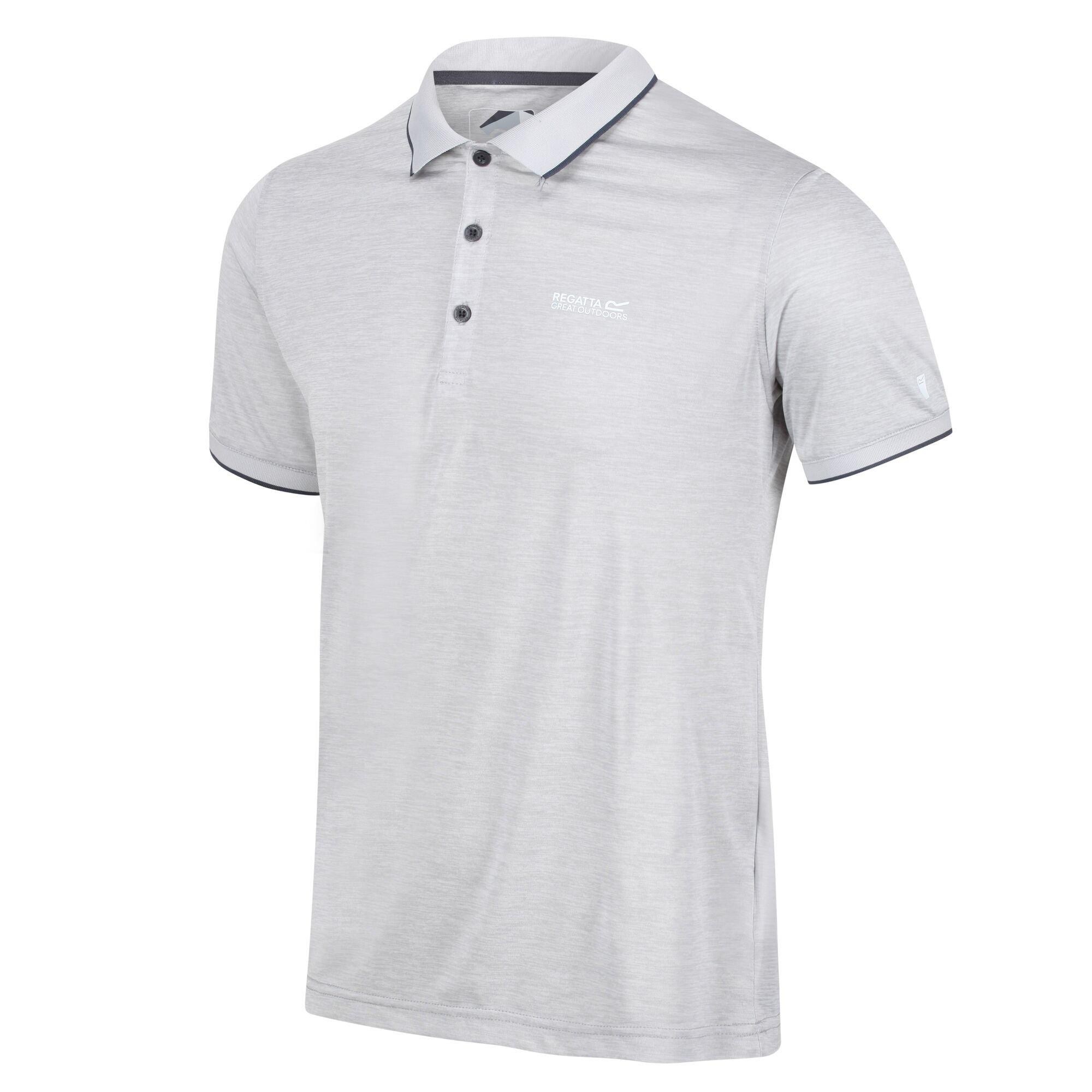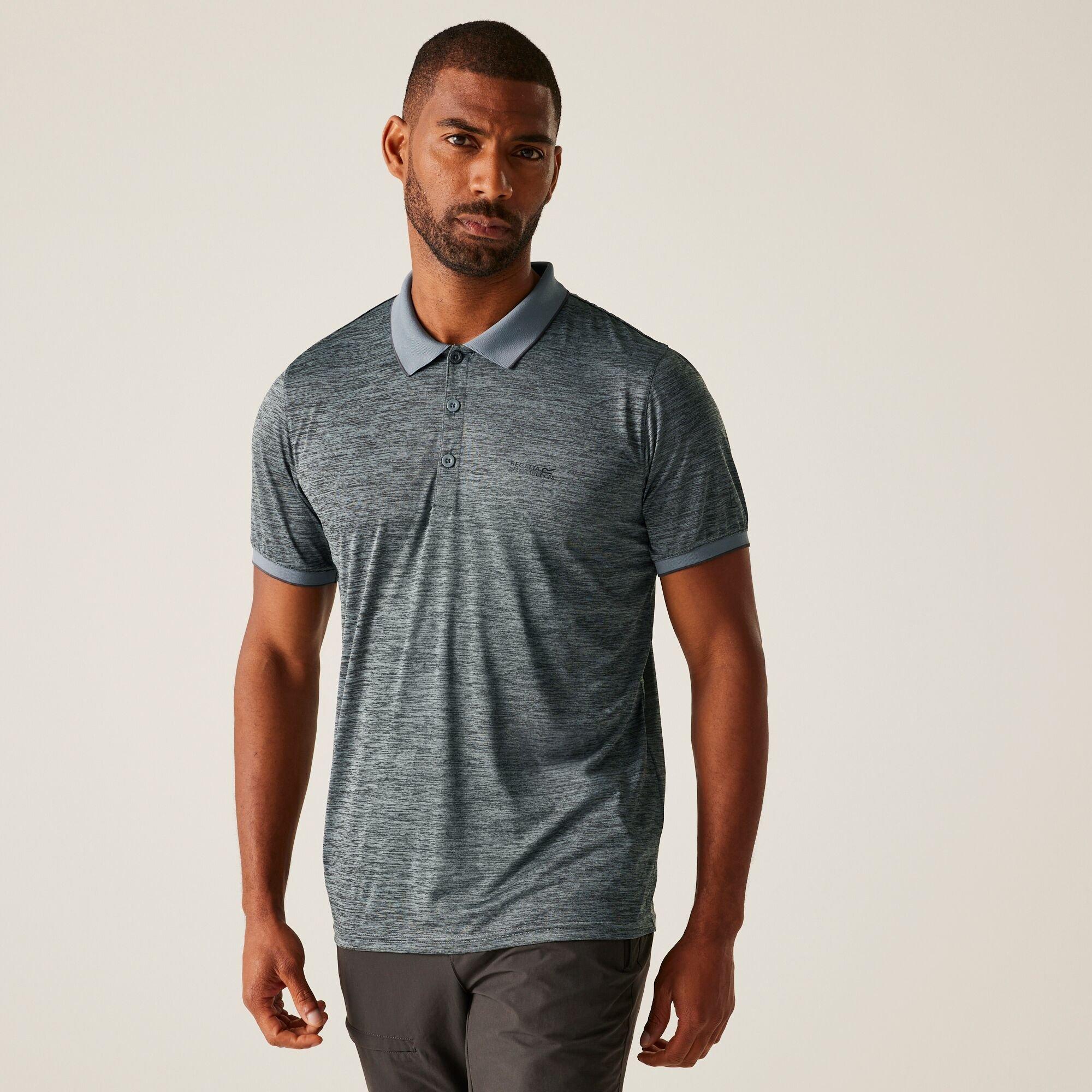 The men's Remex II polo from Regatta- short sleeve polo shirt in sweat-wicking, quick-drying jersey fabric. The soft-touch marl fabric provides cooling airflow and is soft-to-wear. Cut with a classic three-button fastening and lightly ribbed collar and cuffs.