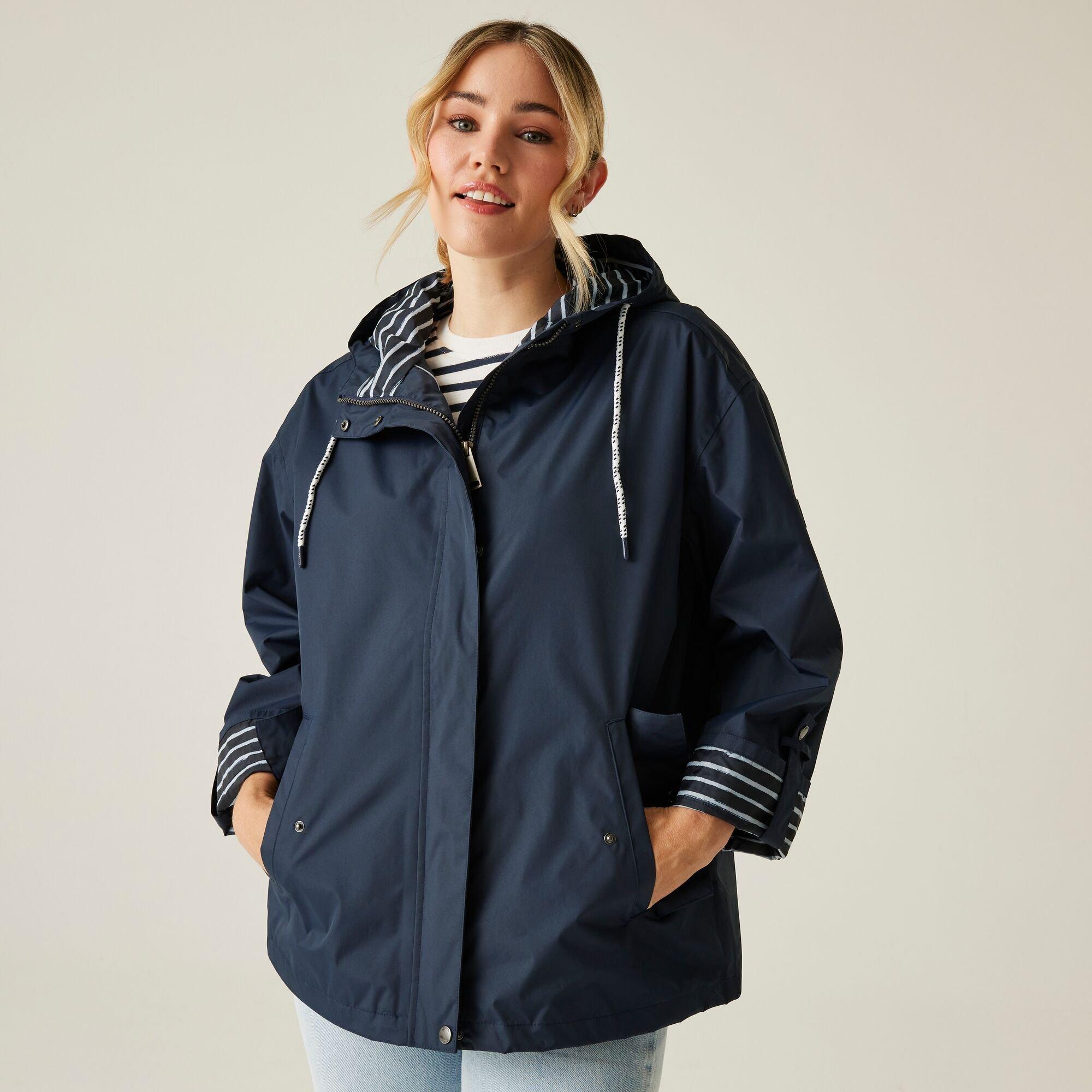 The Sasry women's jacket from Regatta combines weatherproof performance with practical design, enhancing your everyday style effortlessly. The waterproof and breathable Isotex 10000 peached polyester fabric features taped seams for full waterproofing. The stylish striped lining adds personality. The grown-on hood with drawcord adjusters for customisable coverage. Two pockets with trendy snap fastenings are ideal for storing your belongings.