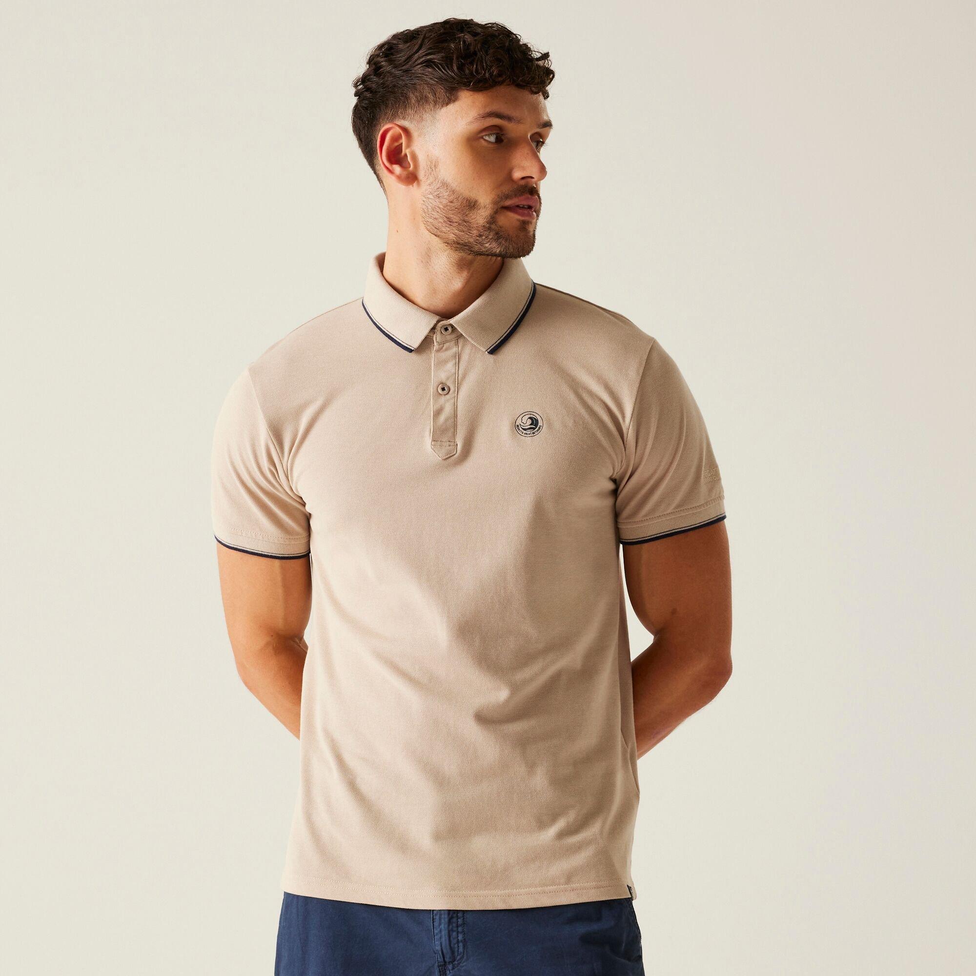 The Tadeo II men's t-shirt from Regatta adds style to your everyday. The t-shirt offers a super soft feel and great breathability, thanks to the 100% cotton pique fabric. The men's tee comes with a 2-button placket with matching branded buttons, plus stripe tipping to the ribbed collar and cuffs. You'll stay safe thanks to the UV Protection.