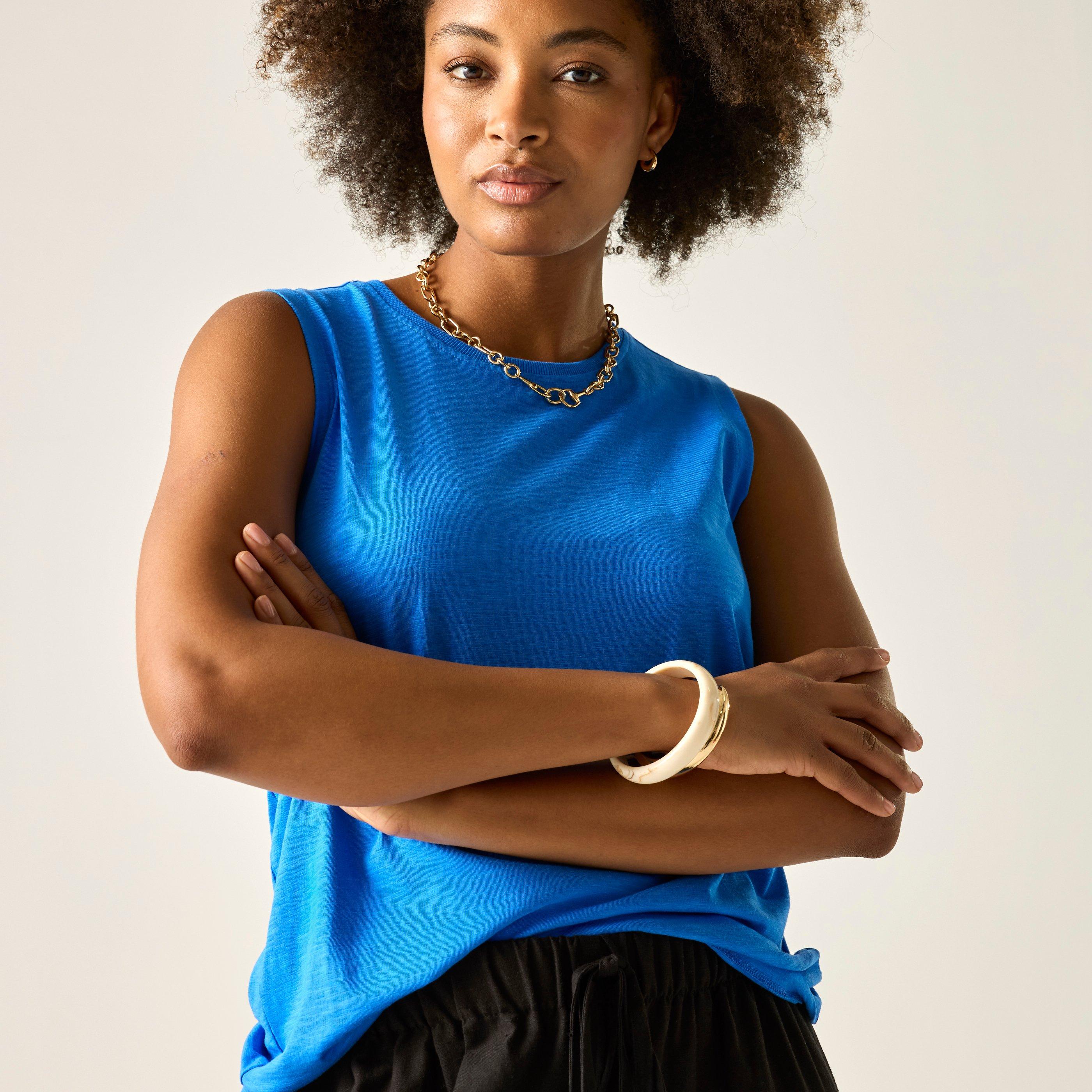 The Fariene women's sleeveless top from Regatta elevates your everyday style. The ladies top is made with 100% cotton, delivering soft and breathable wear. It's designed with a classic ribbed crew neck. With practicality in mind, the ladies vest comes with built-in UV Protection (UPF). 155gsm 100% BCI cotton stripe slub jersey fabric155gsm 100% BCI cotton slub jersey fabricCrew neckRibbed neckline