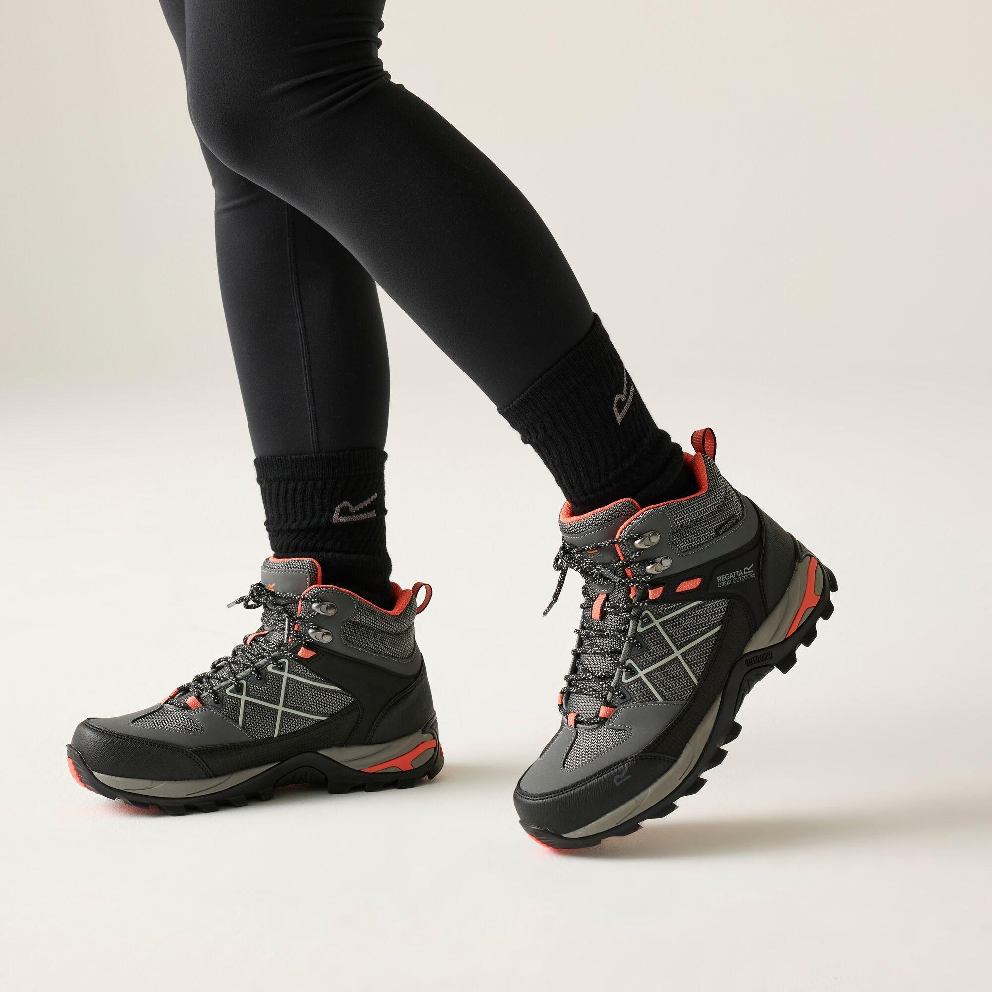 The Lady Samaris III women's hiking boots from Regatta will get you ready for exploring. You're gifted a fully waterproof hiking boot thanks to the Isotex technology. The superior comfort comes with the TECFOAM insock, so feet stay happy throughout your hike. The durable rubber outsole makes the ladies hiker perfect for uneven terrain.