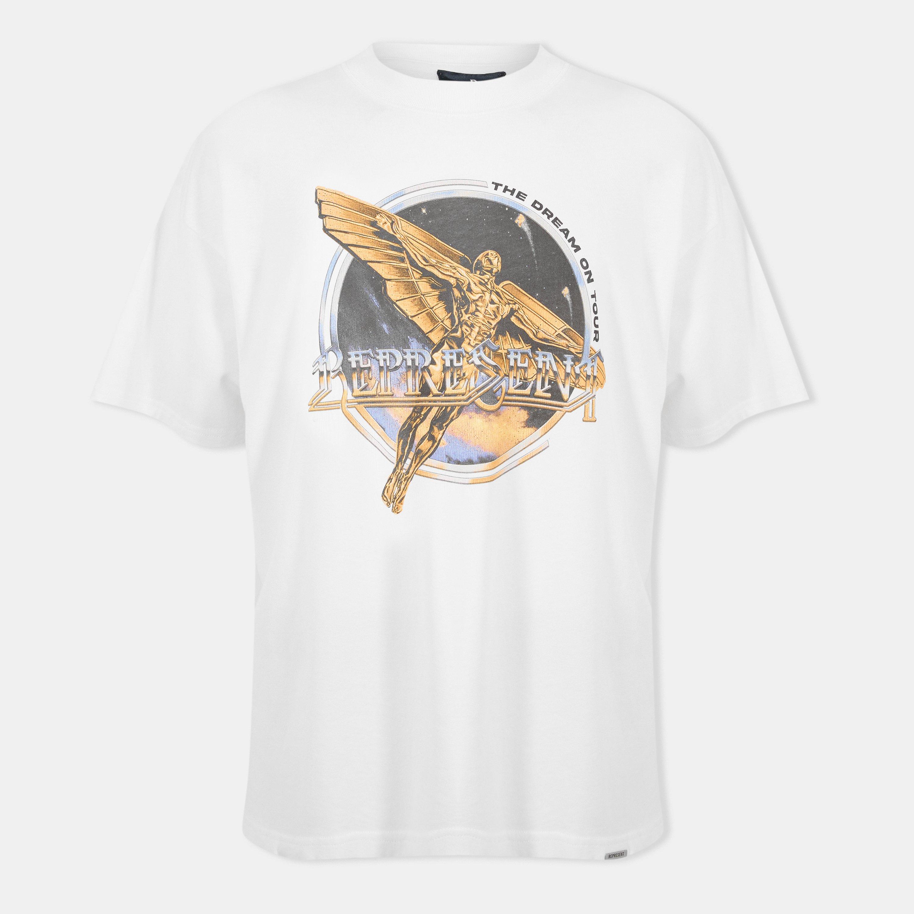 Represent's Rep Golden Tour Oversized T-Shirt delivers relaxed streetwear fashion with a loose, contemporary cut. It features the brand's urban style through its sizing and a roomier fit. Made from cotton fabric with reinforced seams, this tee offers both comfort and enhanced durability that defines modern streetwear.