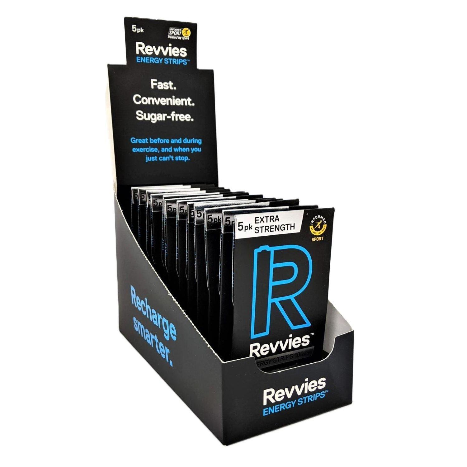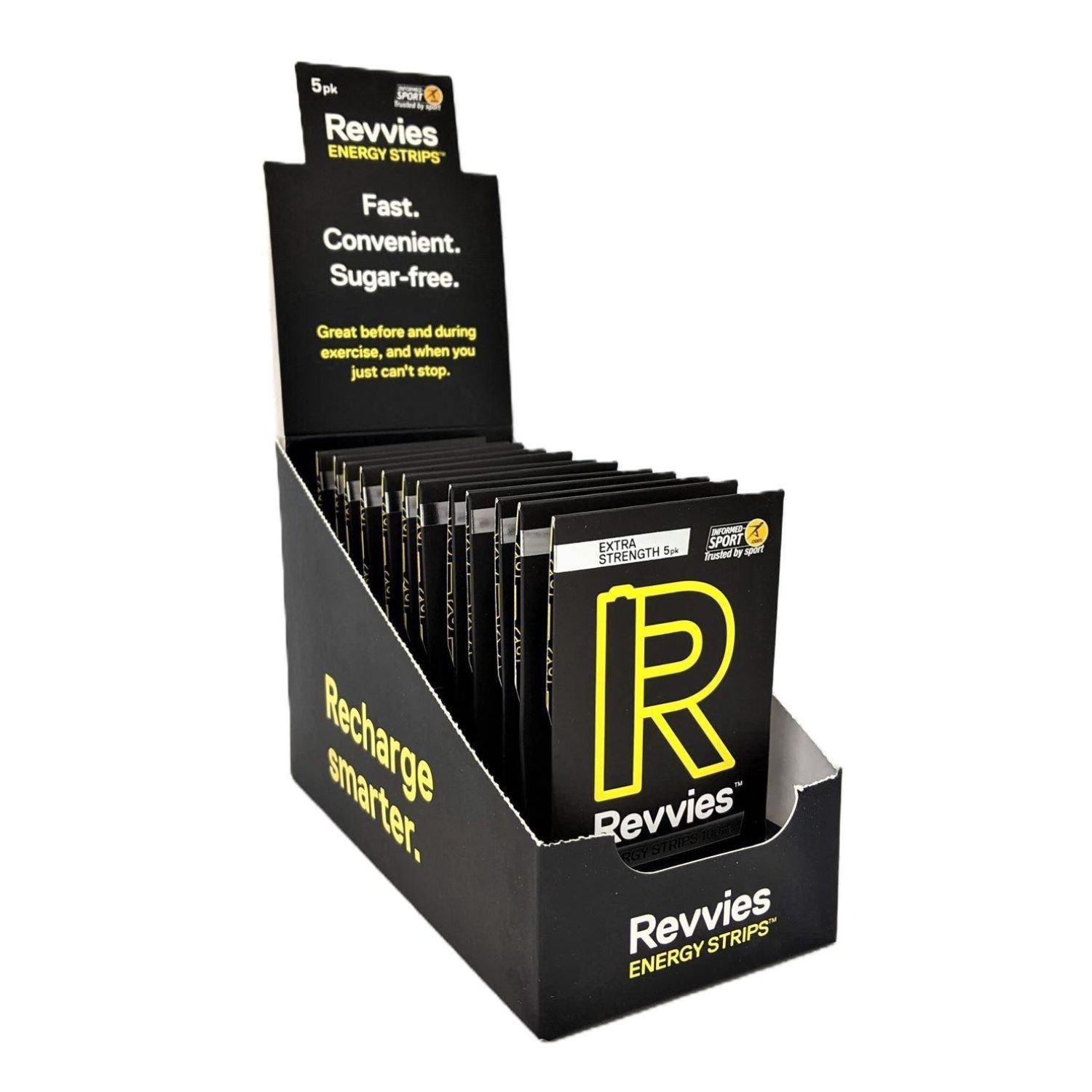 Revvies multi-award-winning energy strips provide a fast-acting boost that’s easy on the stomach. Perfect for making your runs, rides, and workouts feel easier and more enjoyable. Revvies helps you push harder for longer in training helping you accelerate your progress, and to perform at your peak on race day.