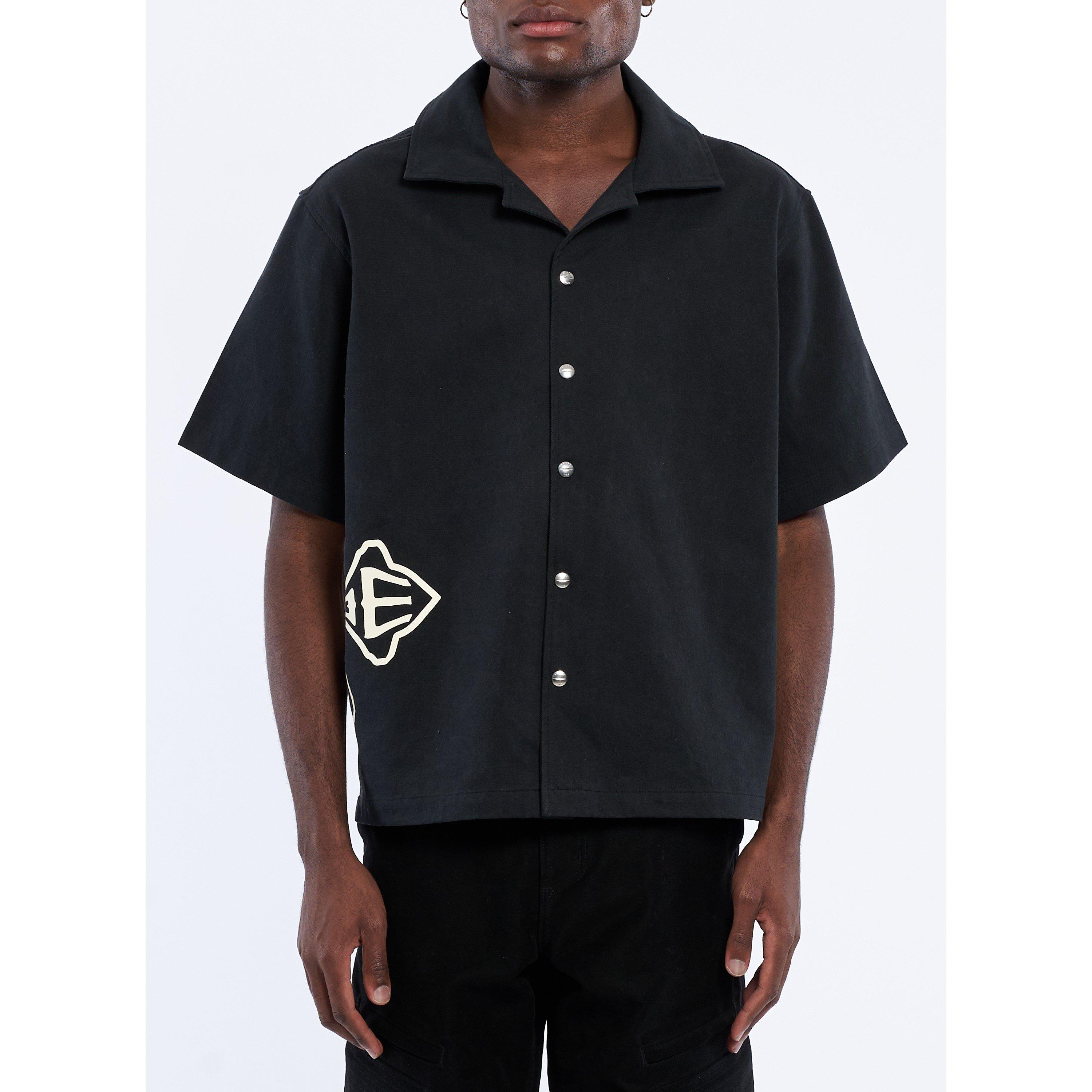 Rhude's Cross Logo Short-Sleeve Patterned Shirt features a cross pattern throughout with precise tailoring. The regular fit design includes a classic collar and button-front closure.