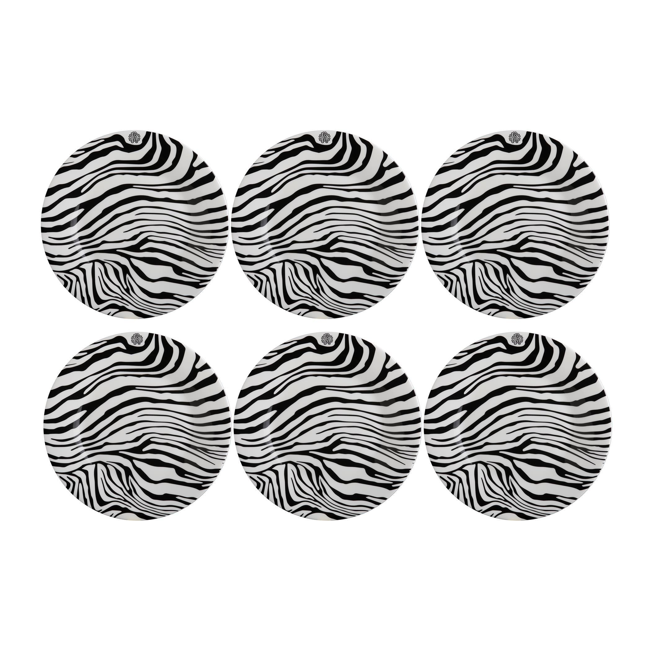 Impress guests with these Zebrage dessert plates from Roberto Cavalli Home. Crafted from fine bone china, this set features the designer's famous emblem and a zebra print. Make sure you pair with matching tableware to complete your collection.