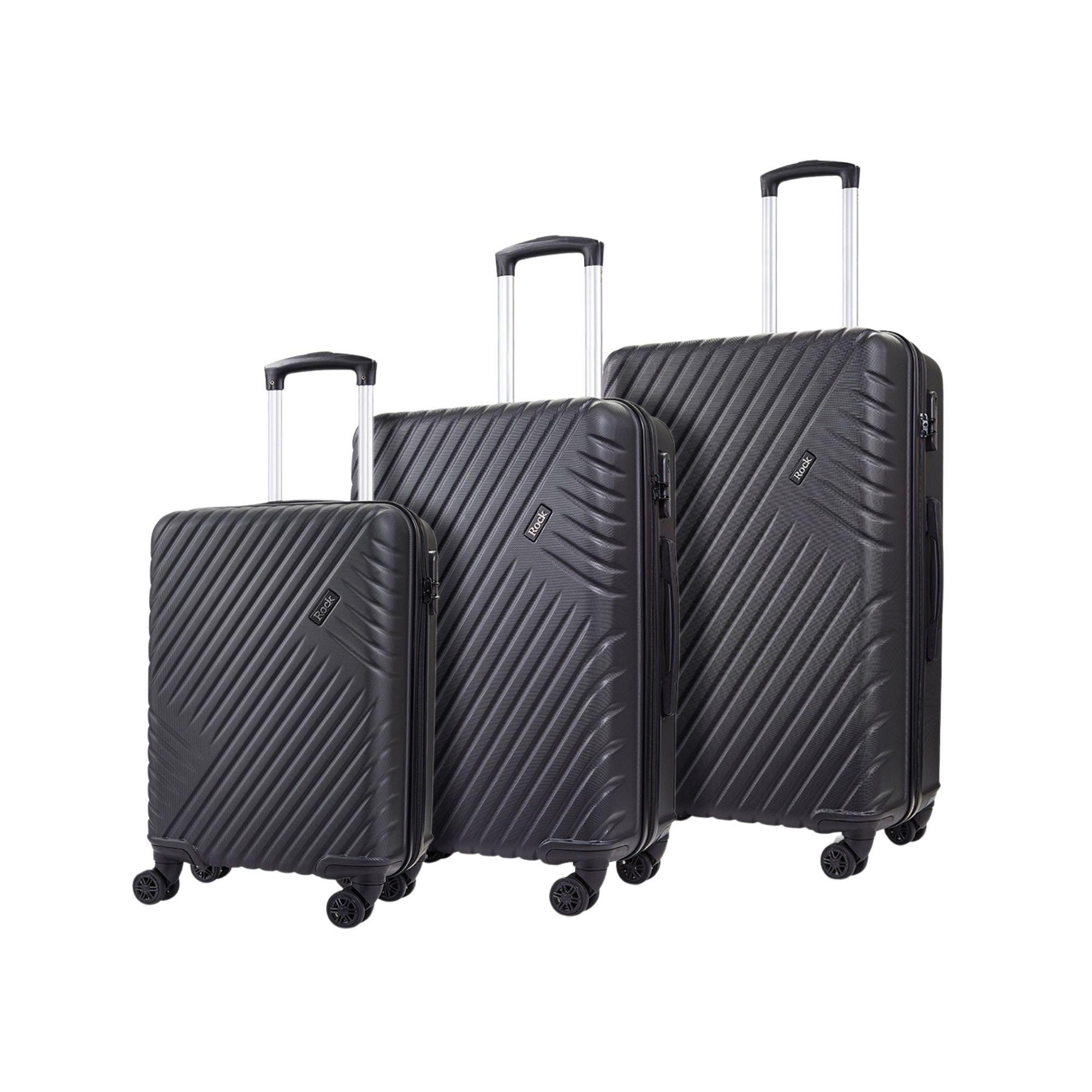 The refined lines and angular patterns of Santiago offers a light-weight packing solution that doesn't compromise on style. Tough & Practical - 8 smooth rolling wheels and a telescopic, push-button handle will help you glide effortlessly on your travels. Effortless 360-degree rotating wheels make manoeuvring around an airport or train station fast and easy. For your complete peace of mind, Santiago cases are fitted with a combination lock. The interior is fully lined, with a divider section. The design also features packing straps to keep your clothes securely in place. The 3 cases can be nested inside one another to save space when not in use. SML: 54 x 36 x 22cm, 2.5kg, 31 litre capacity. MED: 66 x 40 x 27cm, 3.2kg, 51 litre capacity. LRG: 74 x 45.5 x 30cm, 3.9kg, 76 litre capacity.