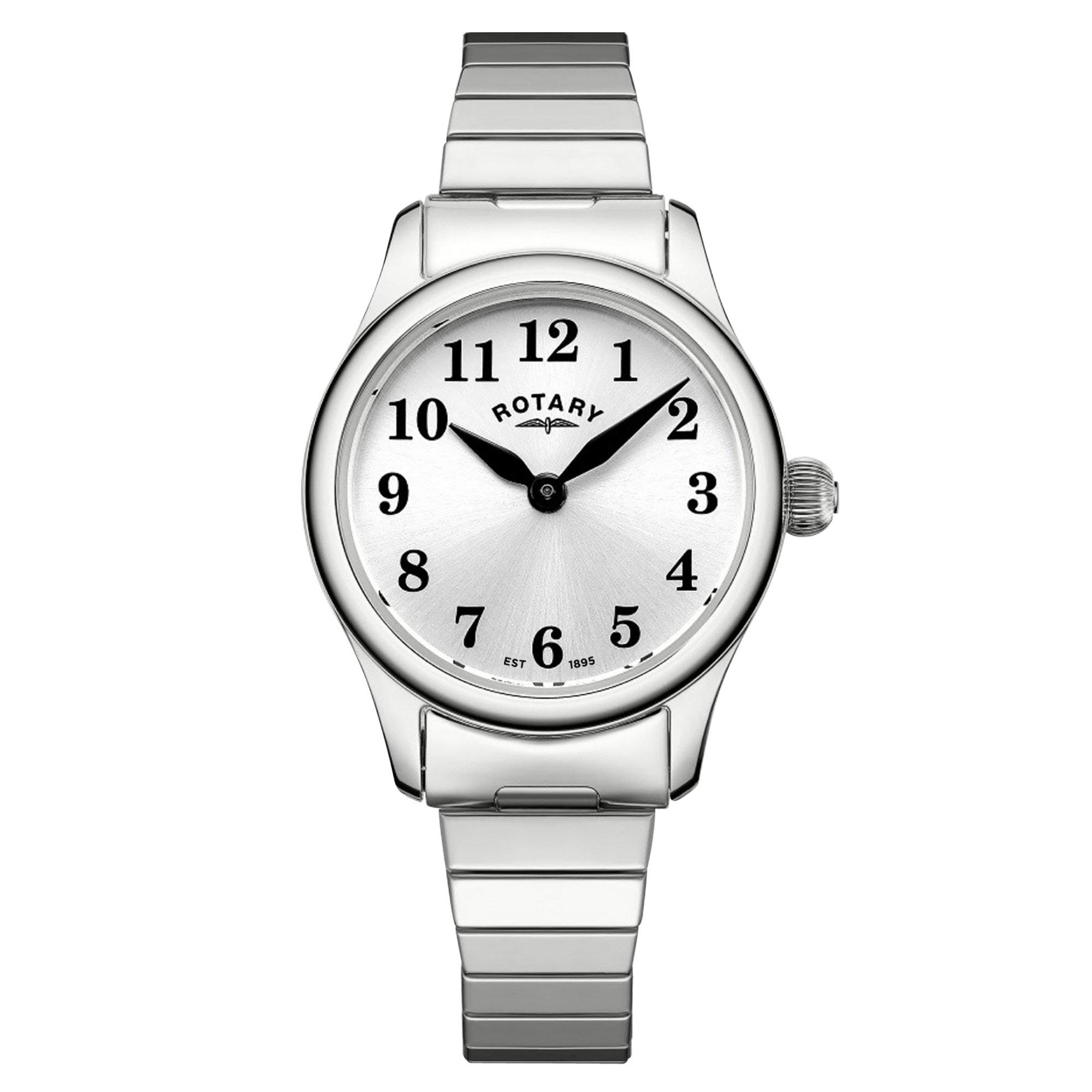 The Rotary Heritage Altera is built with comfort and ease in mind. The bracelet fits any wrist size and requires no adjusting. The 24mm stainless steel case features a minimal, silver sunray dial with arabic numerals and date window at 3 o'clock. This watch is powered by a quartz movement and is water-resistant up to 30m.