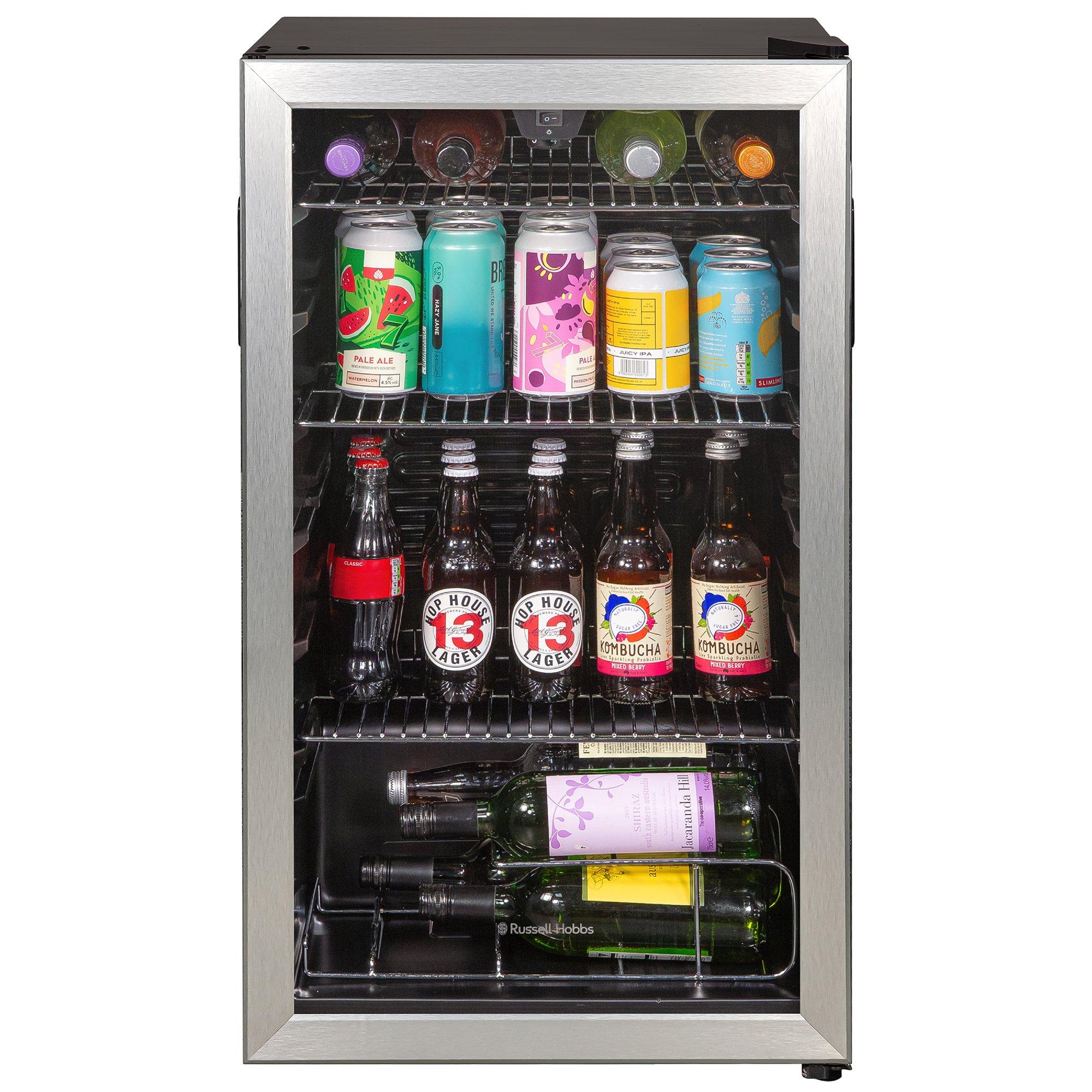 This impressive 93L freestanding wine, beer and drinks cooler is the perfect addition to your kitchen or entertainment area. With 3 removable shelves, and 1 wine shelf, it's easy to customise the cooler to your needs. Fully stocked, this cooler can hold up to 4 bottles of wine and 48 x 330ml cans, meaning its ideal for large families or people who love to entertain. With a stylish and contemporary design, it will complement any setting and the quiet 39dB noise level won’t intrude on your party atmosphere either. The sleek stainless steel door comes with a tempered glass window, which allows you to see what is inside without opening the door and the handy LED light will help you find your chosen beverage quickly. The adjustable thermostat has an impressive temperature range from 2°C - 15°C, so you can precisely adjust the temperature to suit the contents of your cooler. Plus, there are adjustable feet so that you can place your cooler wherever you like it. For added peace of mind, this Russell Hobbs appliance comes with a 1-Year Guarantee, plus an extra year upon registration. This way, in the unlikely event something goes wrong, you know we'll always be on hand to help. 93L Capacity Manual temperature control 3 x Shelf 1 x Wine rack Internal LED light Adjustable feet Energy efficiency performance rating: E 1.8m power cord Dimensions: (H)84.5 x (W)48 x (D)44 CMs Weight: 27 Kg Noise level: 39 dB