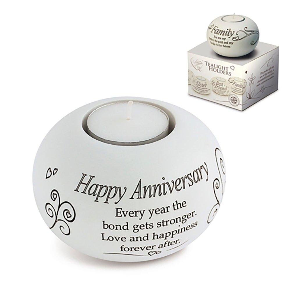 Said Sentiment Tea Light Holder - Happy Anniversary Creatively designed to look like a hand written message, these fabulous tea light holders come gift boxed with a tea light included. 9.5cm Diameter
