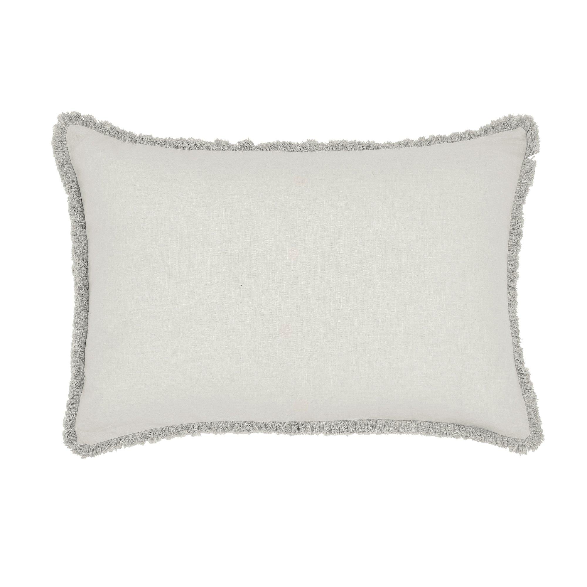 An accessory cushion made from the same soothing fabric as the duvet and finished with rustic frayed trim is available with the set.