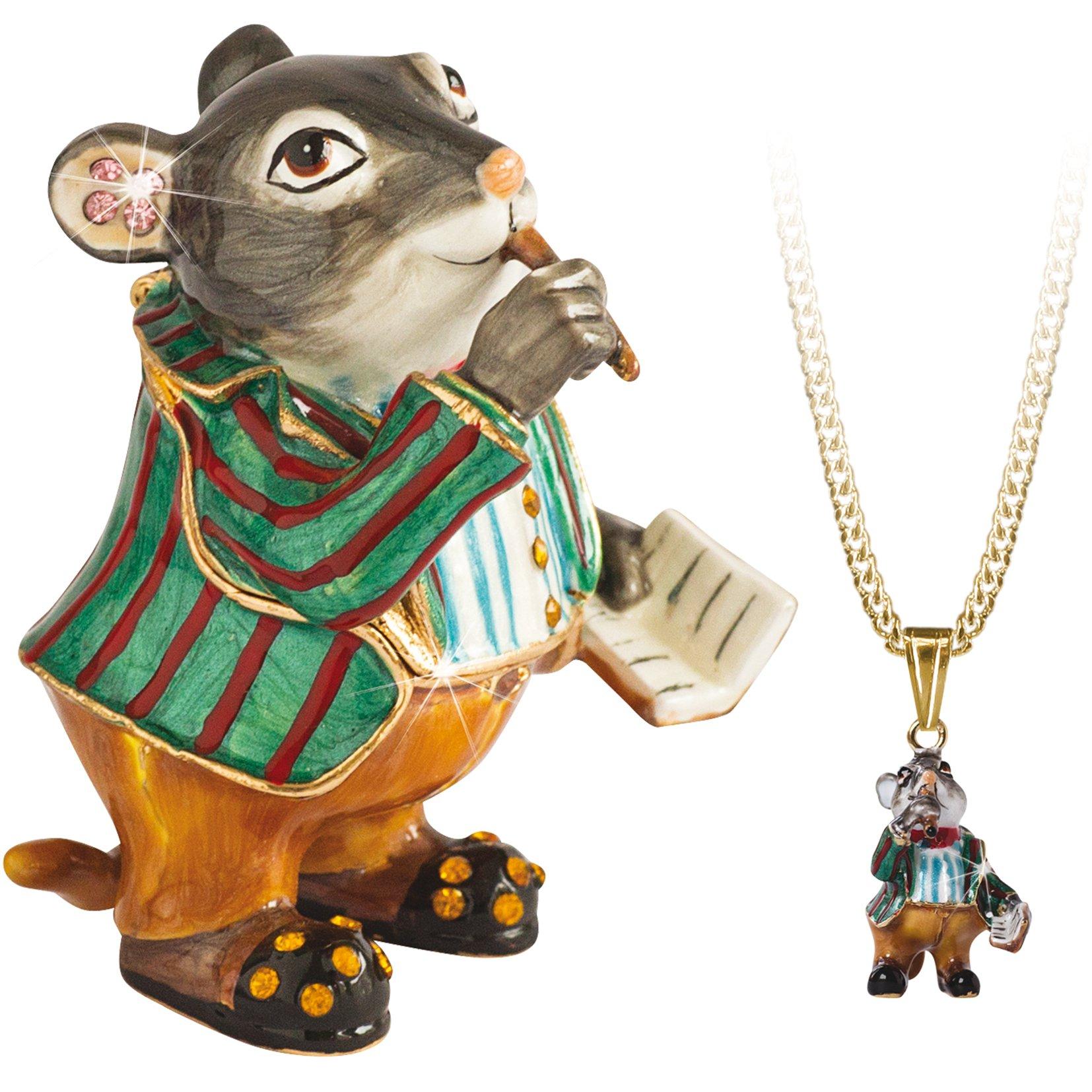 Secrets Ratty A stunning jewelled trinket box. Ratty is hand cast in Pewter and then Gold plated. Individually hand painted with vibrant coloured enamels. All trinket boxes contain a matching pendant necklace and are gift boxed. 6cm H.