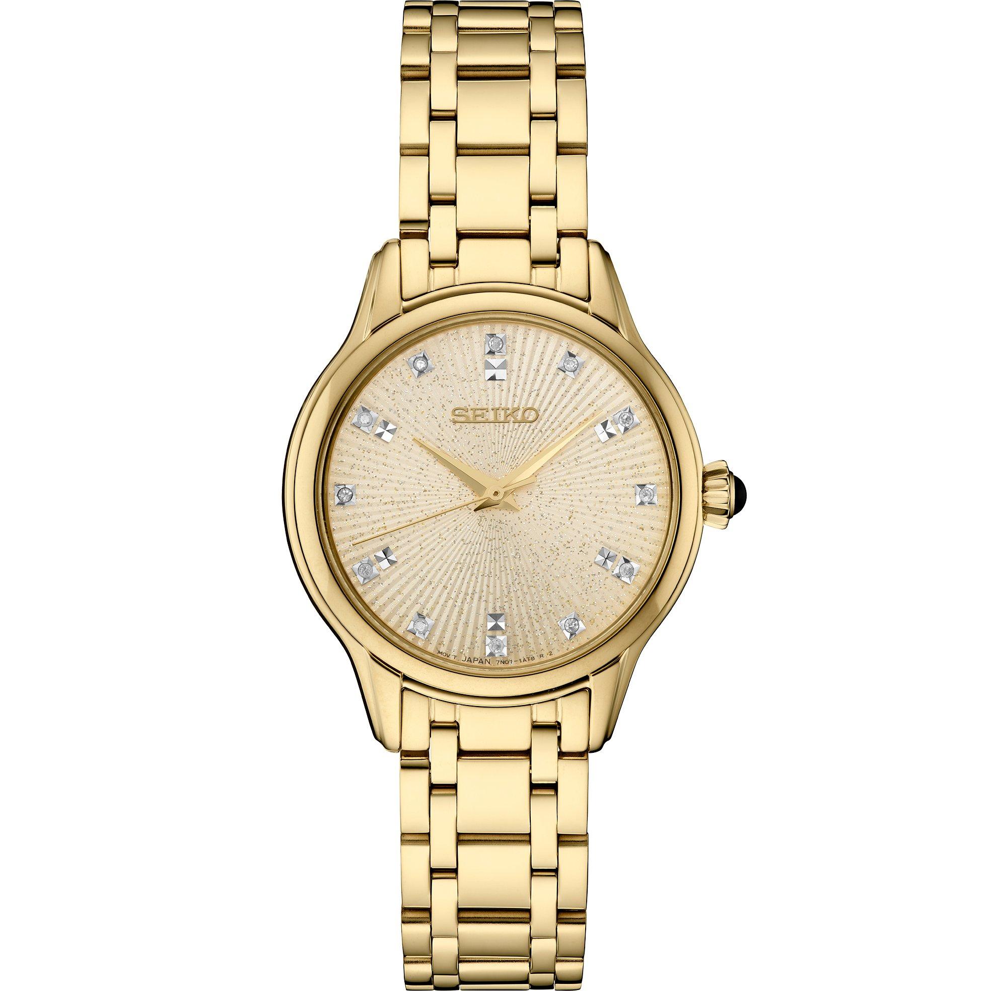 Seiko's Unisex Diamond Set Analogue Quartz Watch offers precision timekeeping alongside a beautiful design, making it an ideal fashion accessory. The sleek timepiece features a diamond-set dial that adds a special touch, while the reliable quartz movement ensures accurate timekeeping.