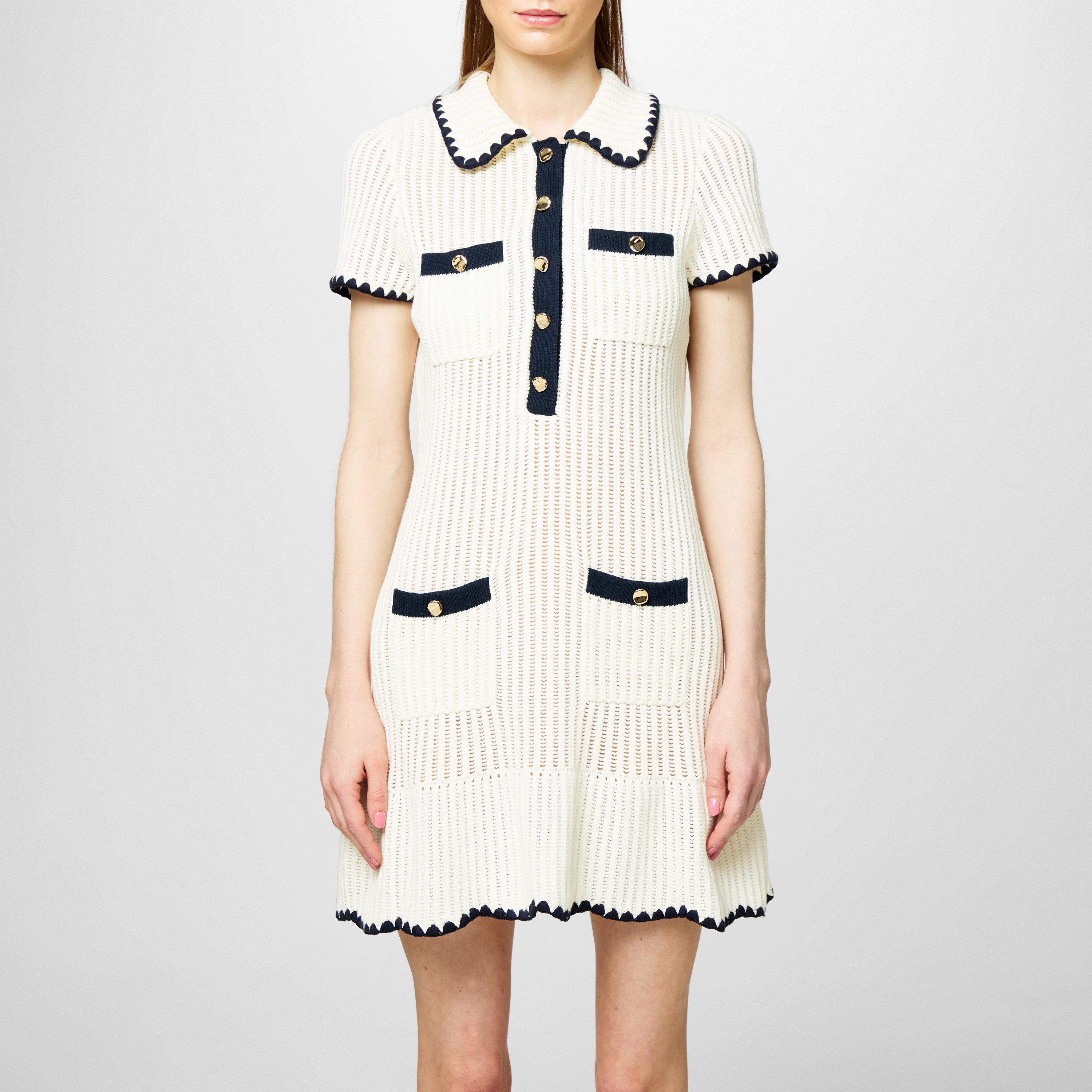 Solid block colouring with contrasting trims and gold-toned button closure provides a sophisticated look, while Self-Portrait's signature labelling ensures instant brand recognition. Whether dressing up to meet friends or looking for something to wear to the office during the week, Self-Portrait's Crochet Collared Mini Dress is the perfect choice.