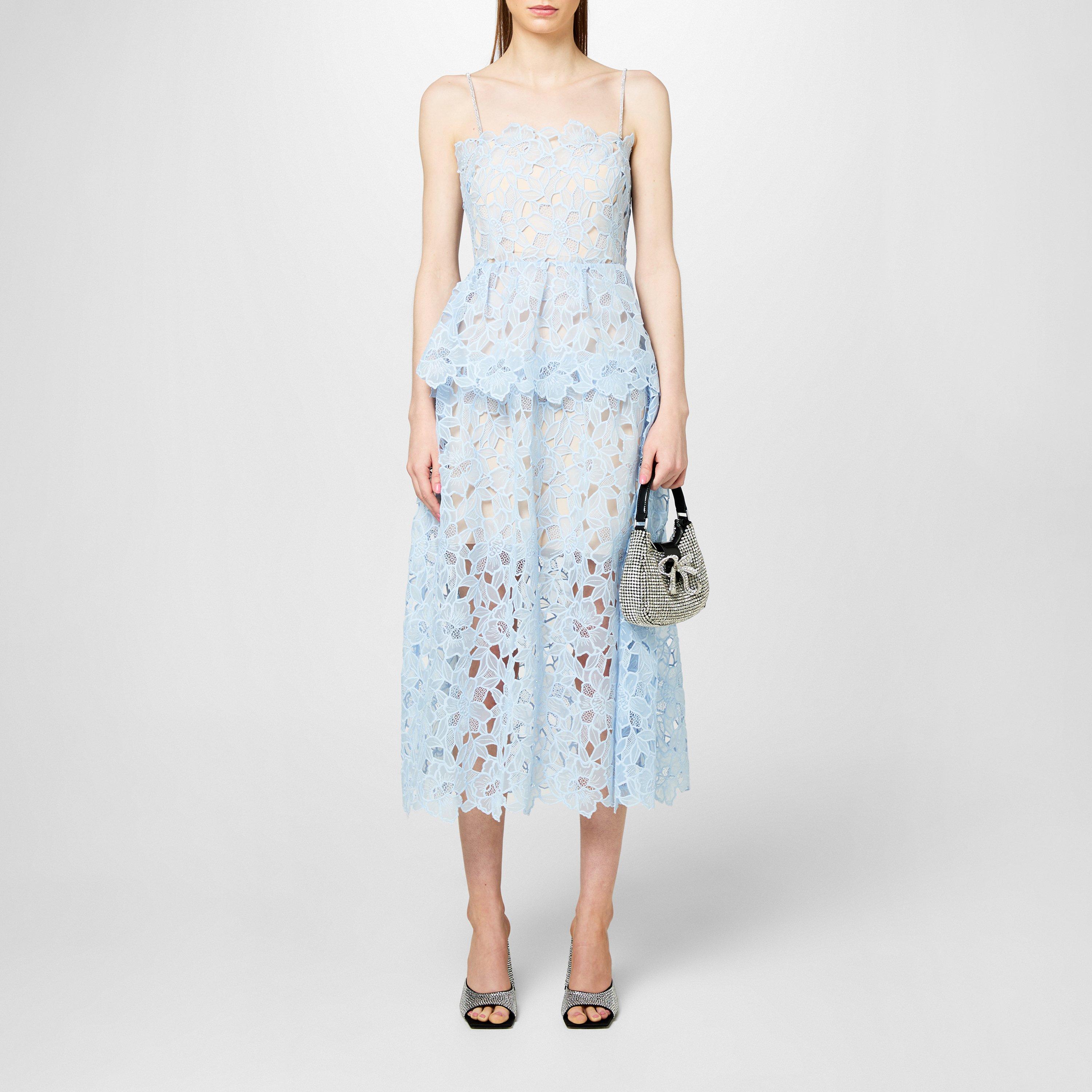 Step into the world of exquisite elegance with Self Portrait, a brand renowned for its luxurious craftsmanship and attention to detail. Introducing the Organza Lace Midi Dress, a captivating masterpiece that embodies the brand's commitment to timeless sophistication.