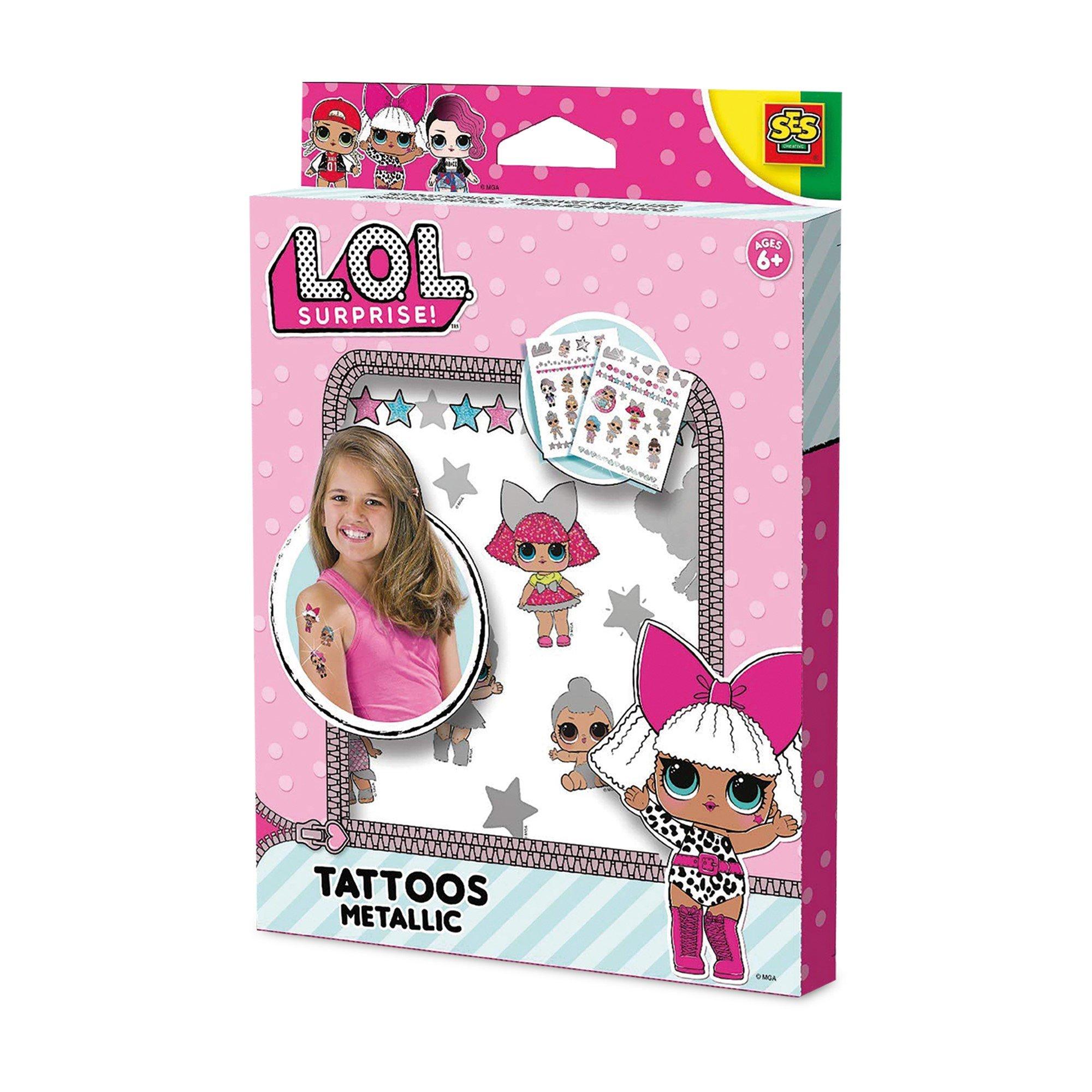 A cool L.O.L. Surprise tattoo, who wouldn't want one? Just put the tattoos onto the skin and dampen with a little water. The metallic layer means that you won't know exactly what your tattoo is going to look like until after you've removed the paper. Skin-friendly, and easy to remove.