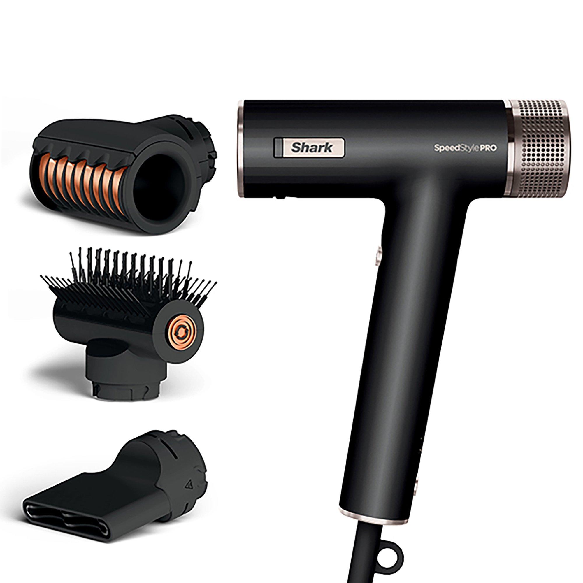 Meet the Shark SpeedStyle Pro Hair Dryer System for straight and wavy hair. Designed for high performance and no heat damage. Includes Scalp Shield — designed to protect new hair growth from extreme heat. High performance: High-velocity airflow delivers wet-to-dry styling with no heat damage. Achieve flawless salon-quality blow-dries and a high-gloss shine at home. High velocity airflow goes from 0-100 mph in less than a second. Scalp Shield Mode: Activate to instantly reduce air temperatures to the optimum safe level for scalp comfort and root drying. Designed to protect new hair growth from extreme heat. Developed with dermatologists. Approved by stylists. No Heat Damage: SpeedStyle Pro measures and regulates temperature 1,000 times a second, never exceeding 110°C. Designed For Less Frizz*: Built-in ionising technology for smooth, healthy-looking hair. Turbo Concentrator:,Designed to give you sleek, straight styles with no heat damage, the concentrator features a 360° rotatable nozzle - adjust it to your desired angle for easy, controlled styling. QuickSmooth Brush: Your answer for voluminous, straight styles—dry, volumise and smooth, all at once. This brush attachment includes a combination of volumising and smoothing bristles for grabbing, smoothing, and shining. FrizzFighter Finishing Tool: Automatically attracts hair, fights frizz, and smooths flyaways. It uses Coanda airflow technology with two streams of air to collect and reduce flyways* on dry, straight or straightened hair. IQ Speed Styling & Drying Suite: SpeedStyle Pro automatically adjusts settings for each accessory to the ideal temperature and airflow to dry and style with no heat damage. Includes 4 heat and 3 airflow settings, Cool Shot, and Scalp Shield. 2-Year Guarantee: Upon registration with Shark, UK & ROI only. *Vs air drying.