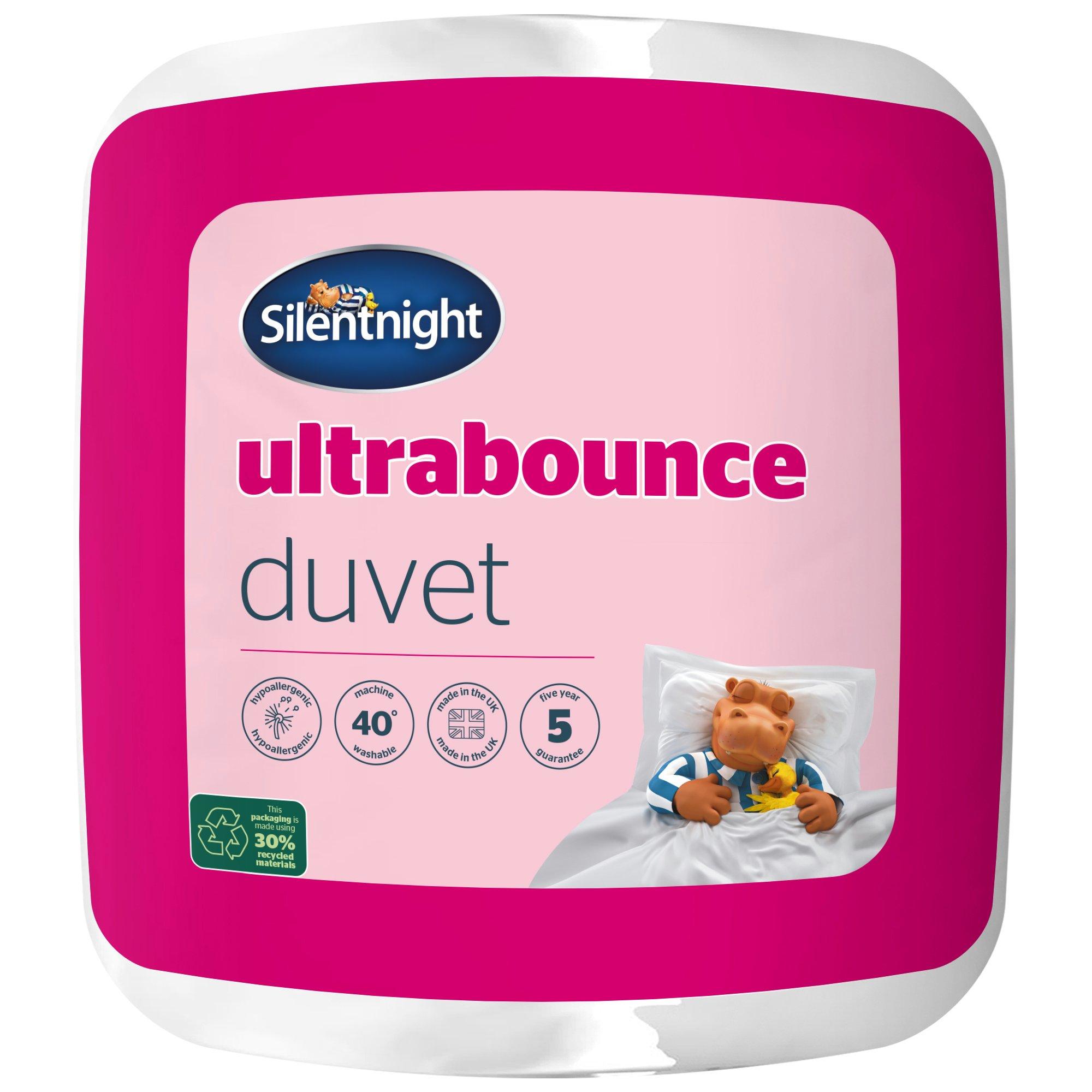 Add some bounce into your bedding and experience unbeatable comfort. Soft comfortable and ultra-bouncy the Silentnight Ultrabounce Duvet is filled with spiral shaped fibres that return to shape to keep your duvet feeling lofty full and cosy encased in soft-touch covers for extra comfort. This product is made right here in the UK and comes with a 5 year manufacturer,s guarantee. The Duvet is hypoallergenic which means it is kind to skin and does not include any contents likely to cause allergies. Fully machine washable so you can keep them feeling just like new for longer. Silentnight are the UK,s most trusted sleep brand with over 75 years, experience in creating products that offer solutions for every sleeper.