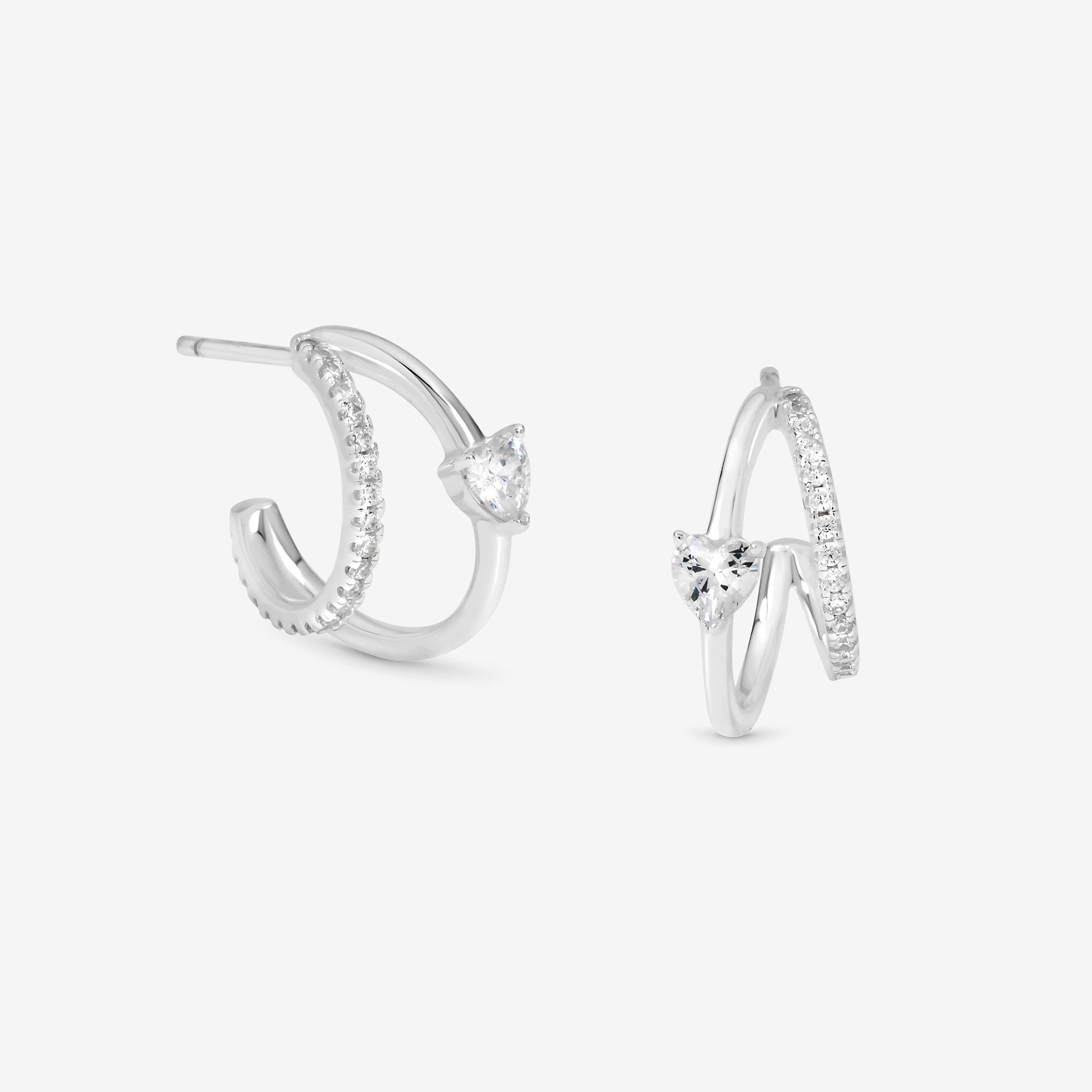 /Home/Accessories/Jewellery/Women's Jewellery/Earrings/Sterling Silver 925 Pave Double Row Heart Hoops