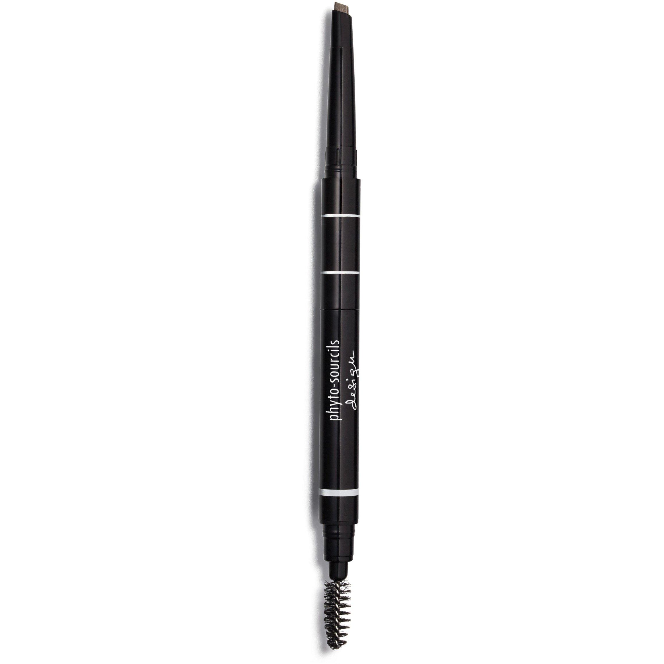 Phyto-Sourcils Design is an eyebrow pencil in 3 parts. It is the professionals’ tool made accessible to all, in unique Sisley packaging: 1- taming brush 2- triangular tip to precisely redefine, reshape and fill in all types of eyebrows, whether fine or thick 3- highlighter, to apply under the arch of the eyebrow for perfecting eyebrow make-up and highlighting the eyes. The texture of the tip, gliding and adherent, enables expert application. The make-up result is buildable, from the most natural to the most intense, for a line that can be redefined however you like. The foam coated with a highlighter powder enables the correct amount to be applied under the eyebrow. Phyto-Sourcils Design is rub-proof: the shape of the brows remains impeccable all day long. Enriched with active skin care ingredients (Acacia wax and Camellia oil), it completely respects the delicate nature of the skin. Its tolerance is ophthalmologically tested. Brush the eyebrows upwards. Use the triangular tip to redefine, reshape and fill in eyebrows. Blend by brushing in the direction of hair growth. Apply a touch of highlighter under the arch of the eyebrow to illuminate the eye area.