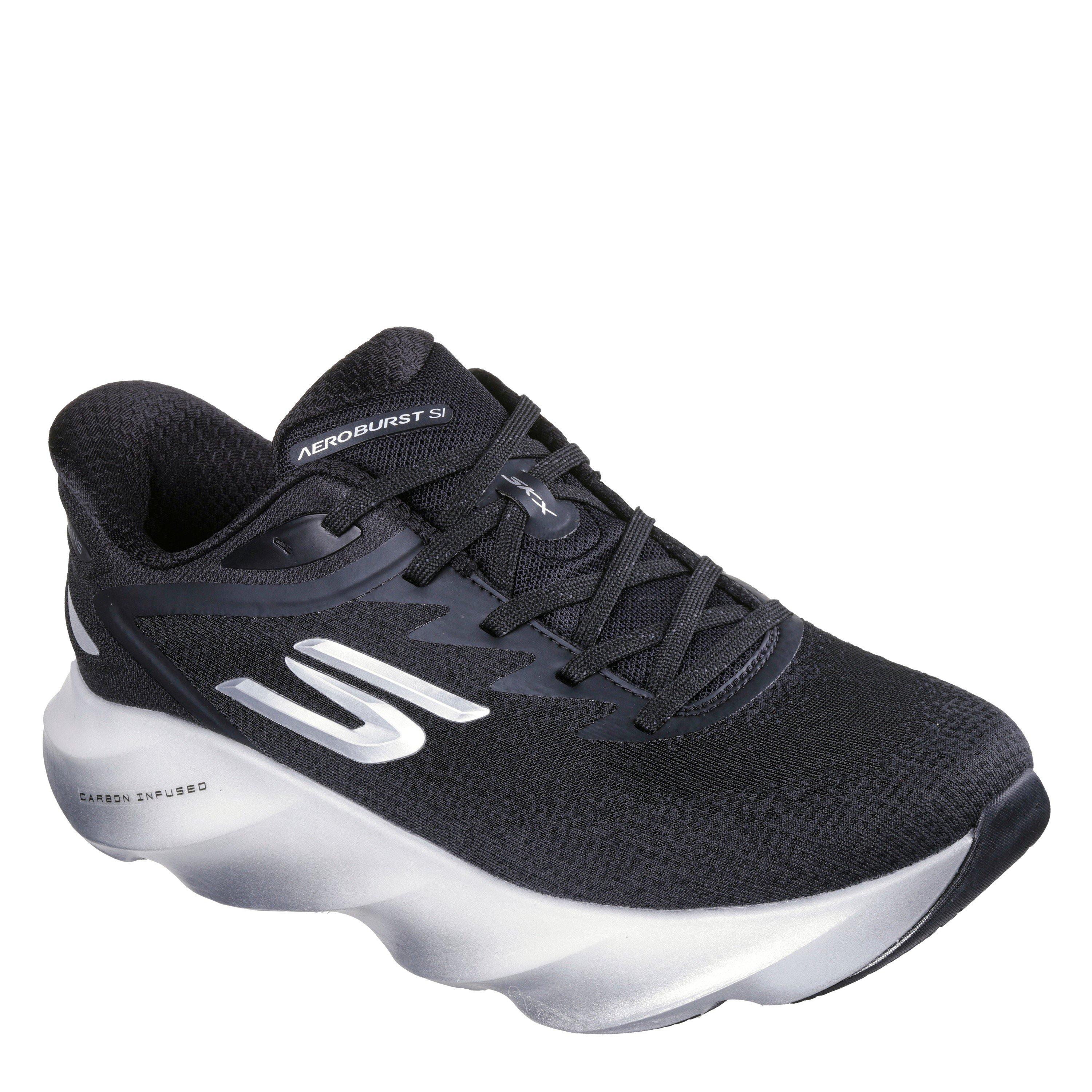 Aero Comfort Technology™ - Hit every mile marker in long-distance confidence and premium cushioned comfort with Skechers Aero Burst™. This well-cushioned running style has been granted the APMA Seal of Acceptance and is designed for the daily runner. Featuring a lace-up breathable engineered mesh upper with our removable Arch Fit® insole system, amplified HYPER BURST ICE™ midsole cushioning with HYPER ARC® technology, a carbon-infused H-plate for next-level energy return, plus a durable Goodyear® Performance Outsole.