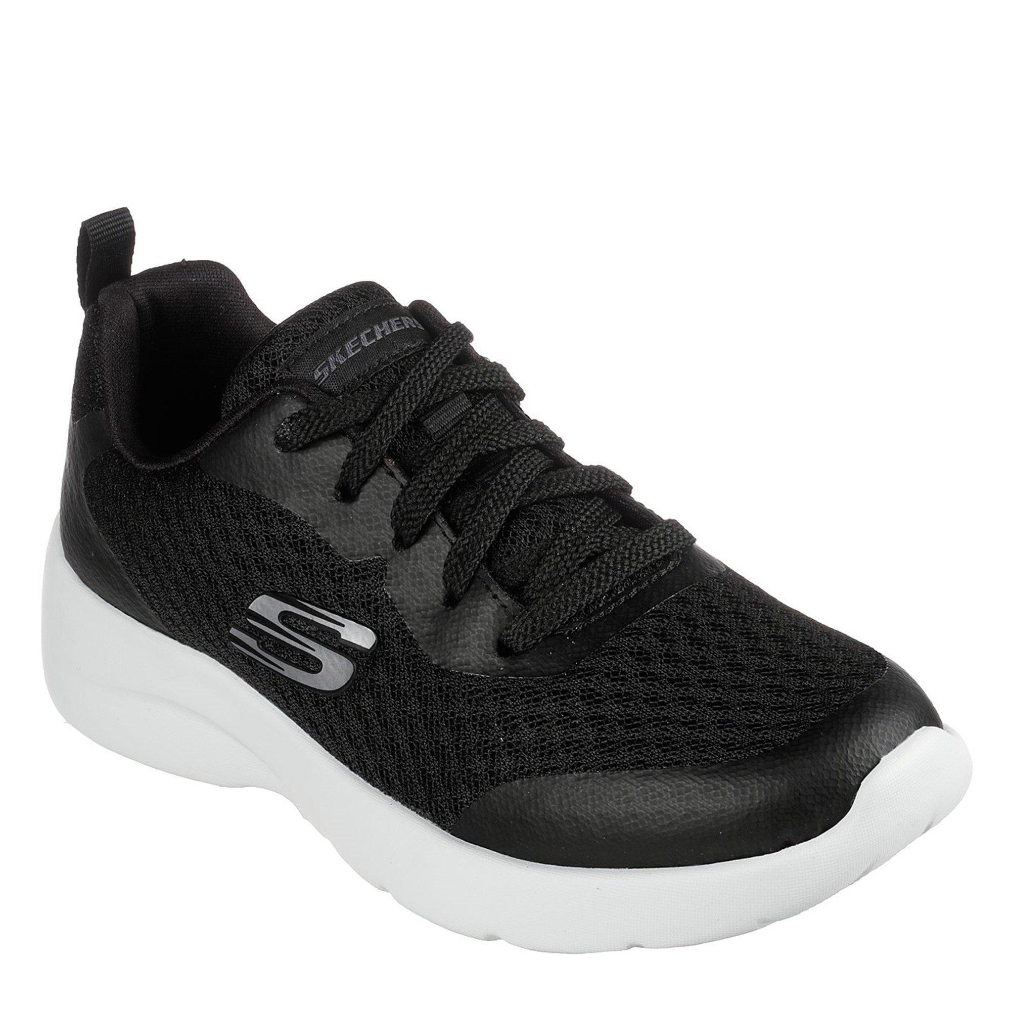 With a sporty aesthetic, this low profile silhouette has been crafted from a lightweight mesh and synthetic upper while the rubber sole and Air-Cooled Memory Foam cushioned comfort insole offer underfoot protection. Styled with stretch laces and a touch-close fastening to the upperm this pair are complete with an adjustable instep strap while Skechers branding to the side and strap adds a designer stamp.