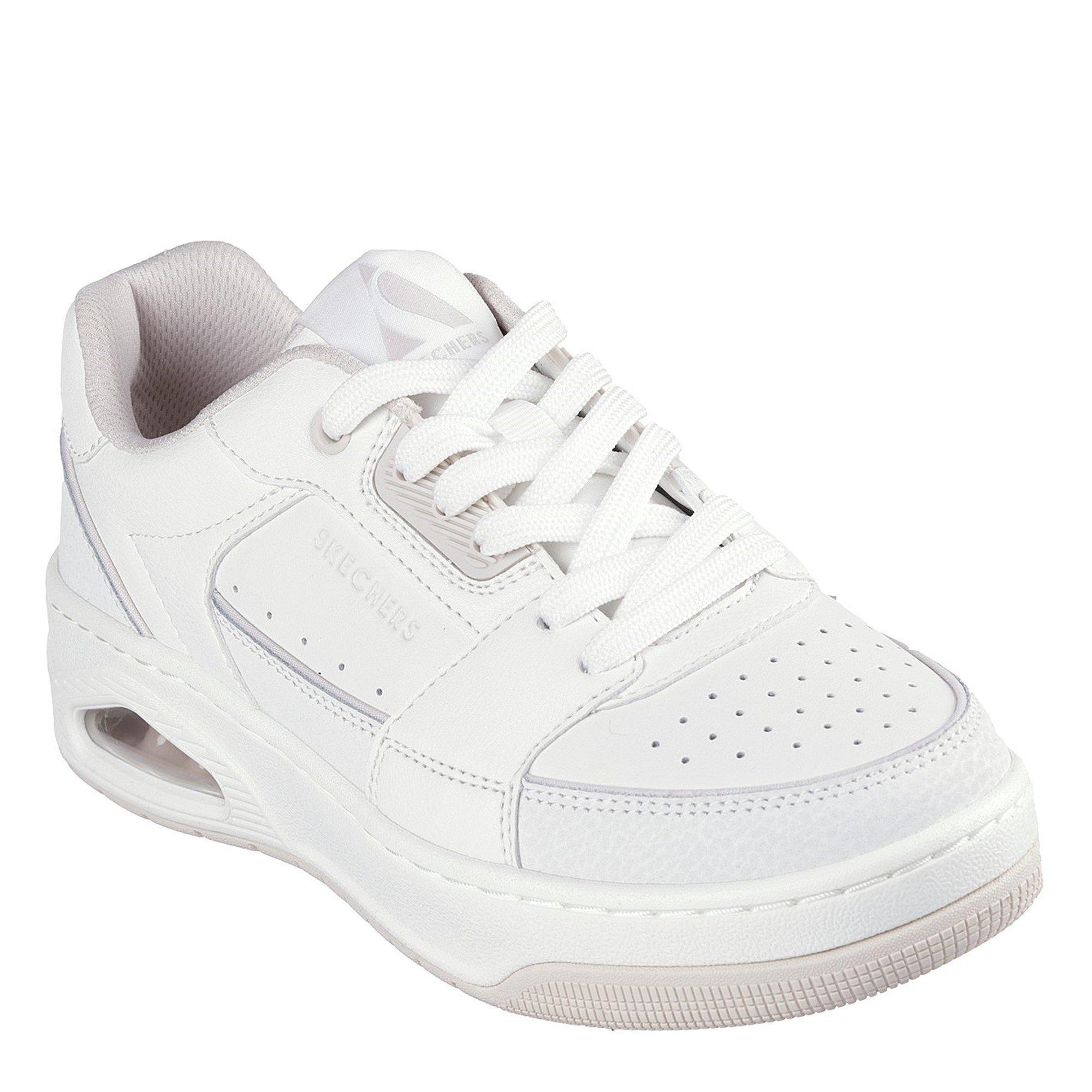 This lace-up court style fashion sneaker features a leather and duraleather trimmed upper with a Skechers Air-Cooled Memory Foam® insole and a visible Skech-Air® airbag midsole.