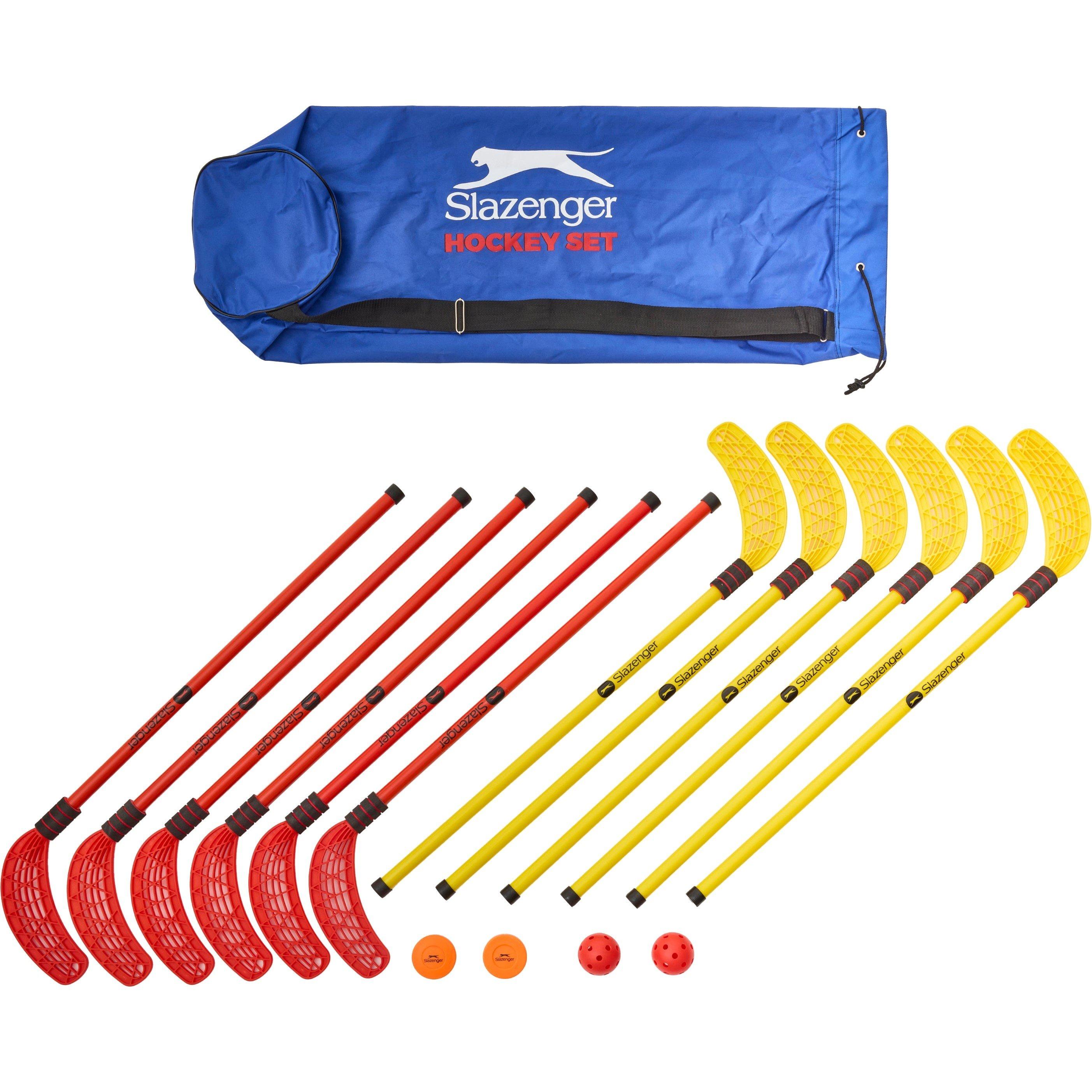 Lightweight and easy to handle, this set is ideal for introducing gameplay and building coordination. The mix of sticks, pucks and balls allows for varied activities, while the included bag keeps everything together for quick setup and storage. Each stick measures 95cm long and weighs 260g. []Contents:[]6 x Red Sticks[]6 x Yellow Sticks[]2 x Pucks[]2 x Perforated Balls[]1 x Bag.