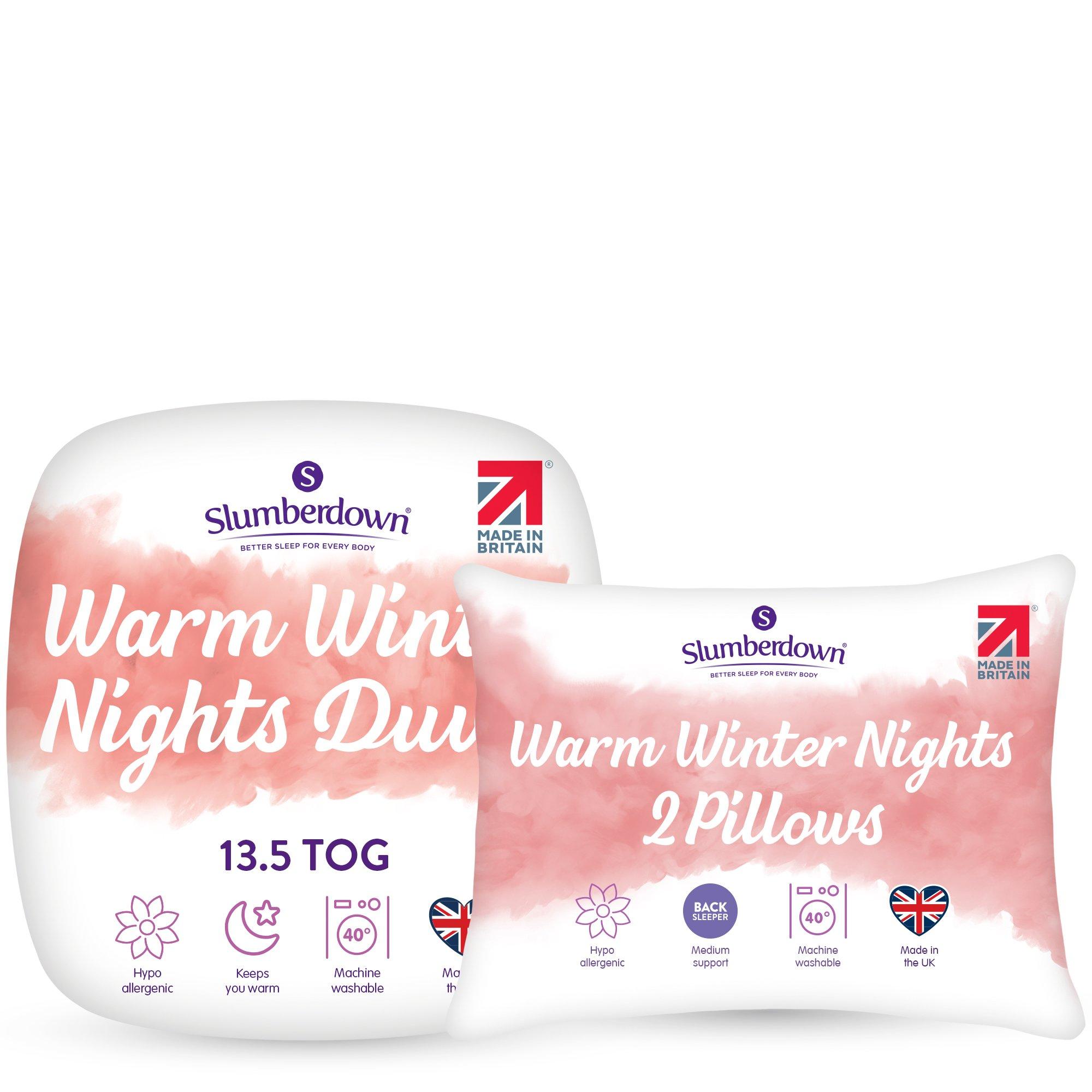 Upgrade your winter bedding with Slumberdown’s Winter Warmth Bundle, available in two cosy options: 13.5 tog for snug comfort or 15 tog for extra insulation on the coldest nights. Each bundle includes a generously filled duvet and two medium-support pillows - perfect for back sleepers seeking restful, supported sleep. Whether you're prepping for frosty nights or refreshing your bedroom, this British-made set delivers warmth, quality, and unbeatable value.