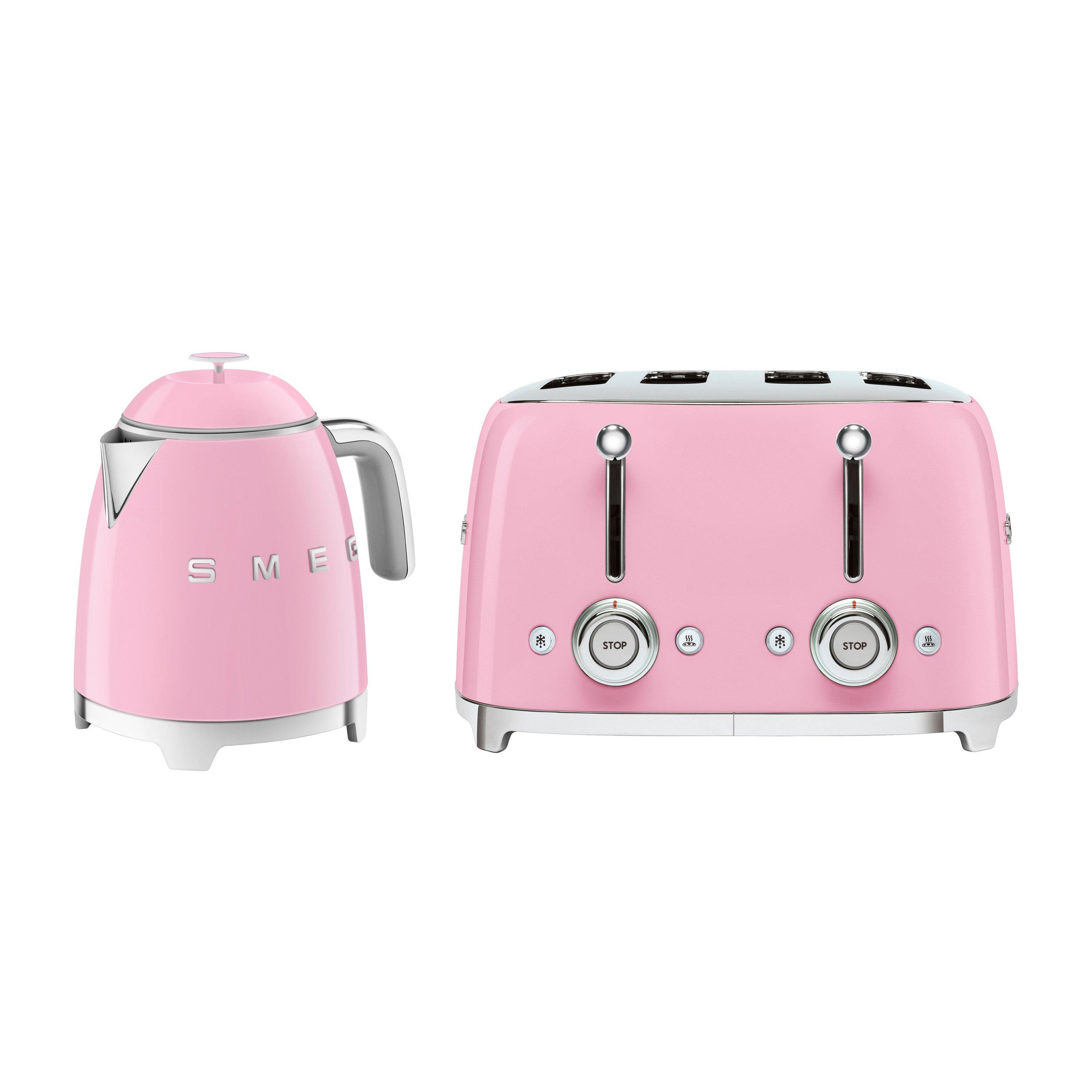 Smeg's iconic retro design offers a pop of colour and a premium enamelled finish, excl. handle. With a capacity of 0.8 litres, Smeg's KLF05 Mini kettle makes up to 3 cups of tea or coffee. The smaller capacity minimises any water waste. The spout has been specially designed with a balanced weight for an easy pour and the lid has been built to manually open at an angle of 80 degrees for easy filling.Whether your preparing fragrant, buttery croissants for two, or a family sized breakfast before the school run, the Smeg TSF03 4 slot toaster has got it covered. This toaster allows up to 4 slices to be cooked at the same time making it ideal for large families, or those who like the start the day with a hearty breakfast for plenty of energy!