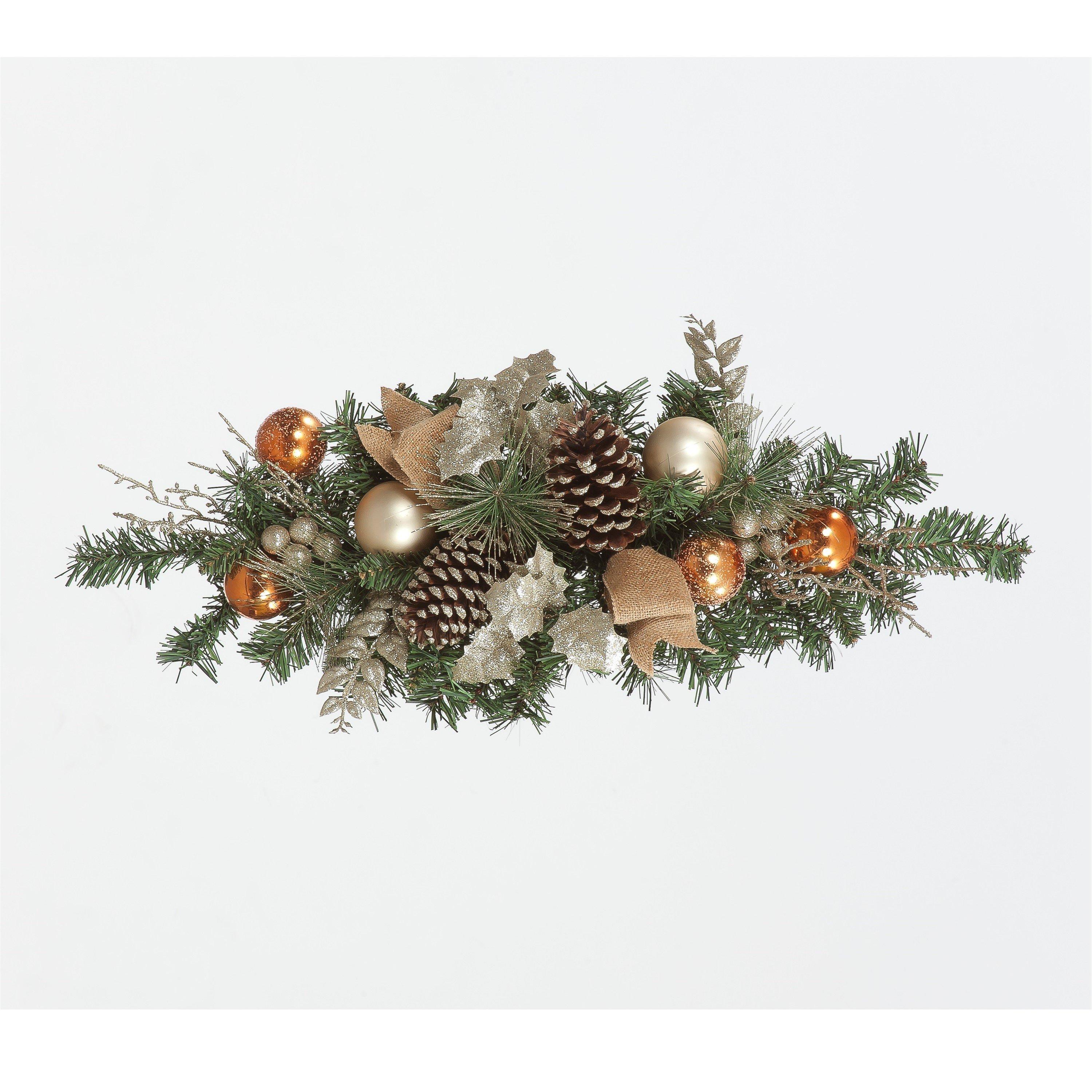 This swag can be used as a table centrepiece, or hung on pictures or door frames, or set along any surface in the home to add a luxurious touch to your festive decor. Decorated with baubles, berries, burlap bows, cones and foliage that is all set in a warm and welcoming colour scheme. Add a set of battery operated lights if you wish to provide an additional glow along it's 80cm length. Suitable for indoor use only.