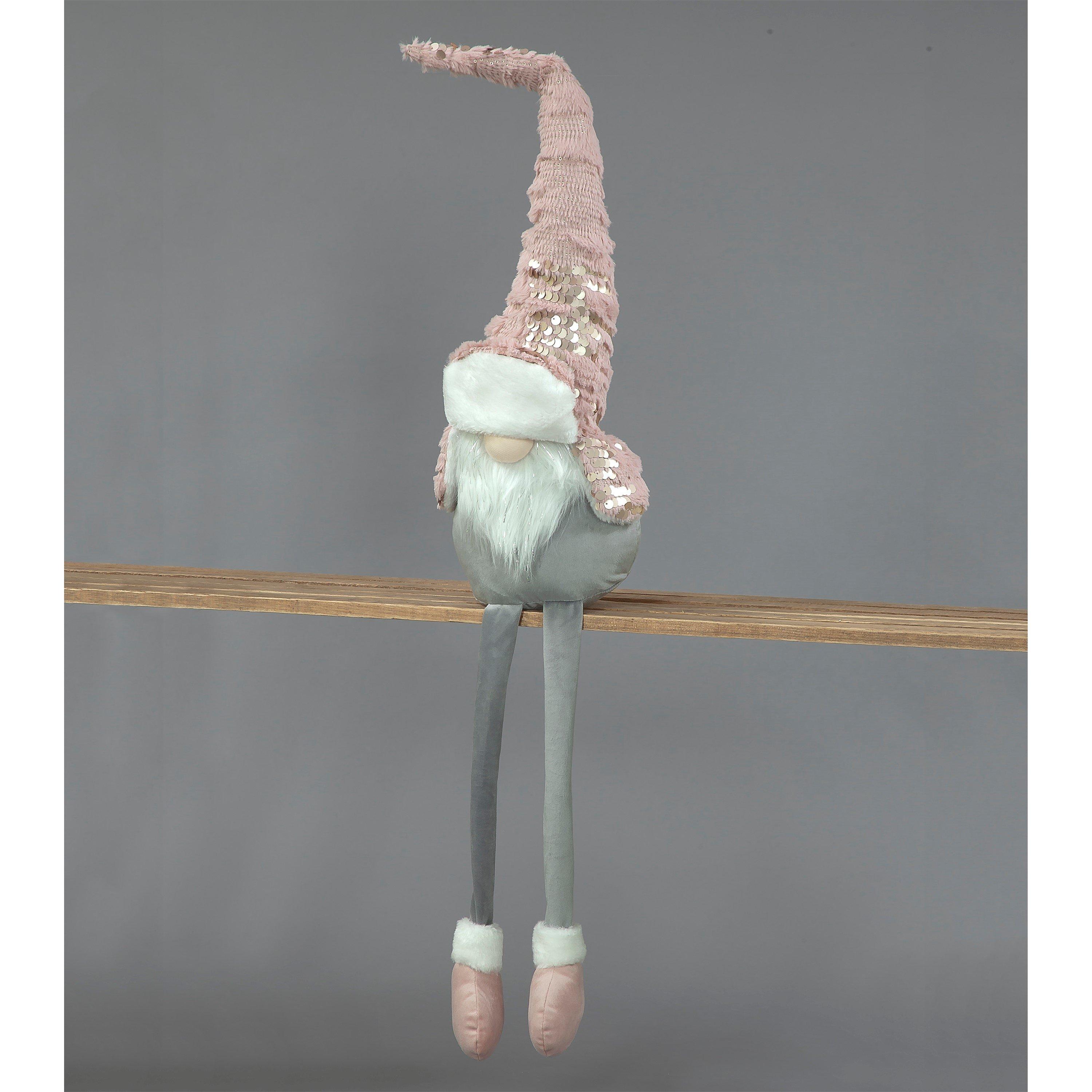 Plush Pink and Grey Sitting Santa Gonk decoration. Measures 96cm in height, 21cm width and 15cm depth. Suitable for indoor use only.