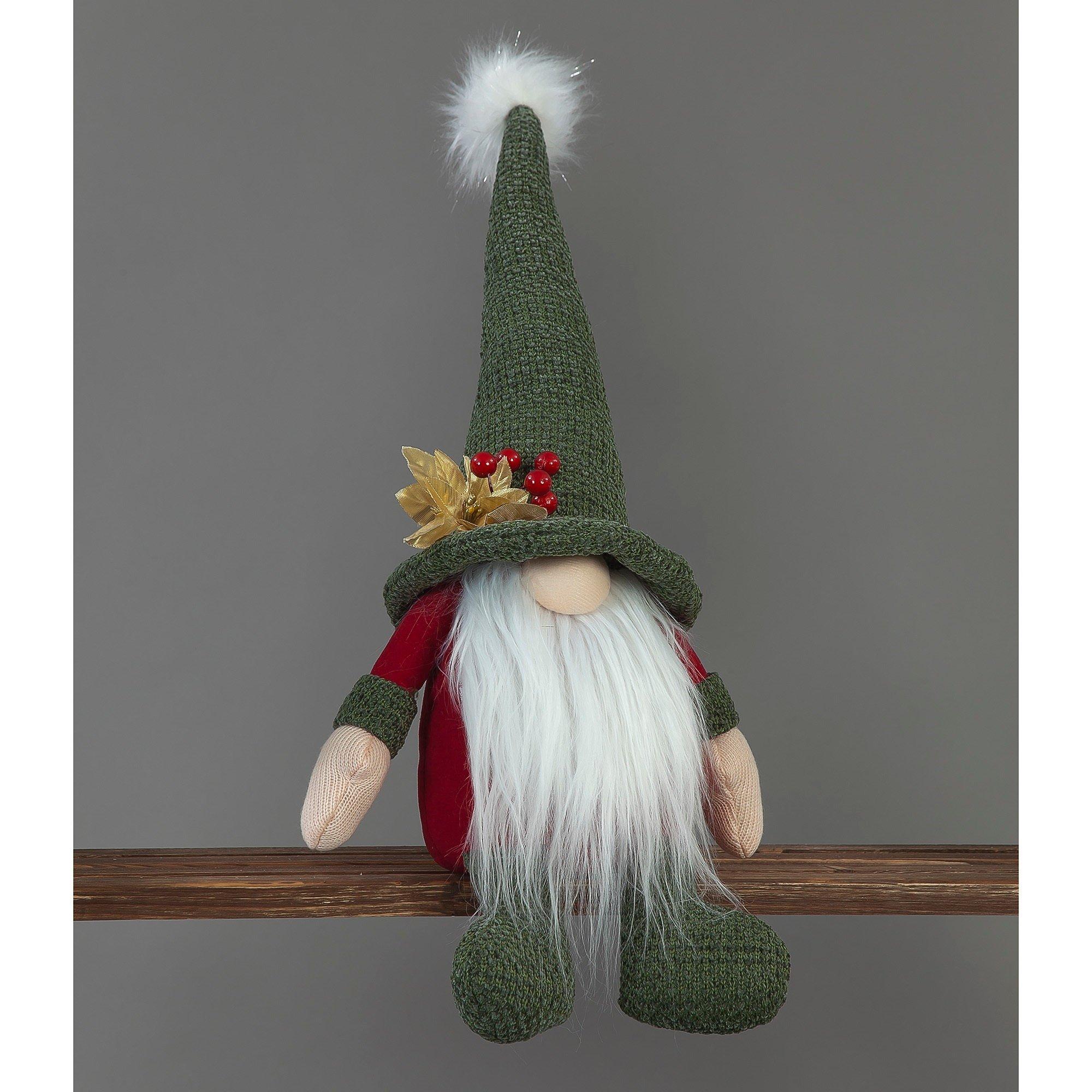 A plush Christmas Santa Gonk that measures 52 cm from head to toe and is set in a sitting position, with a tufted gonk hat and Christmas flower decoration. Add some character to your indoor Christmas display by placing on shelving, your mantle or window sill, sit underneath your Christmas tree or anywhere on a level surface around your home. Suitable for indoor use only.