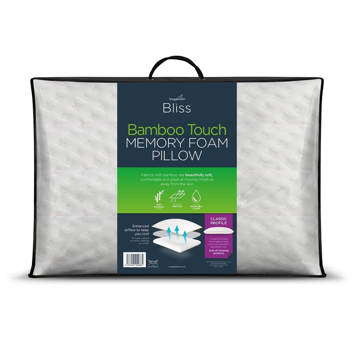 BAMBOO - The bamboo blend cover on this Snuggledown Memory Foam Pillow is beautifully soft, comfortable, and great at moving moisture away from the skin. Bamboo is naturally hypoallergenic, antibacterial and antifungal – a great choice for additional peace of mind