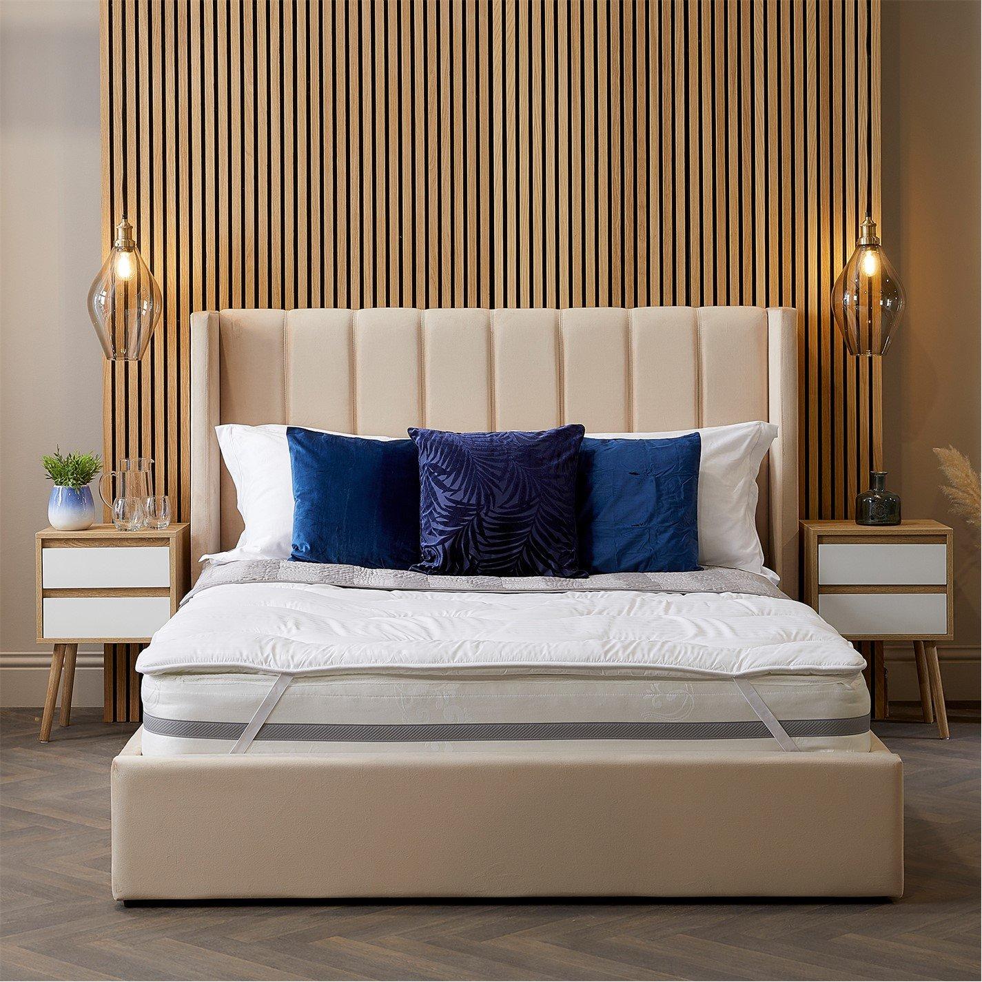 Have you ever stayed in a hotel and wished you could replicate the amazing night’s sleep you had, but in the comfort of your own home? There’s something decadent and satisfying about sinking into a soft and bouncy hotel bed, and the Luxurious Hotel Mattress Topper from Snuggledown aims to transport you back to that feeling, night after night. Finished with a soft and silky microfibre cover, this topper has been generously filled with a premium fluffy Dacron hollowfibre filling. The breathable Dacron fibres are scientifically proven to carry excess heat and moisture away from the surface of the topper – keeping your body at a regular temperature, resulting in a comfortable and quality night’s sleep. Use the secure elasticated straps to add this topper to your existing mattress, and get ready for a premium, hotel-quality sleep experience that you can consistently achieve every night.