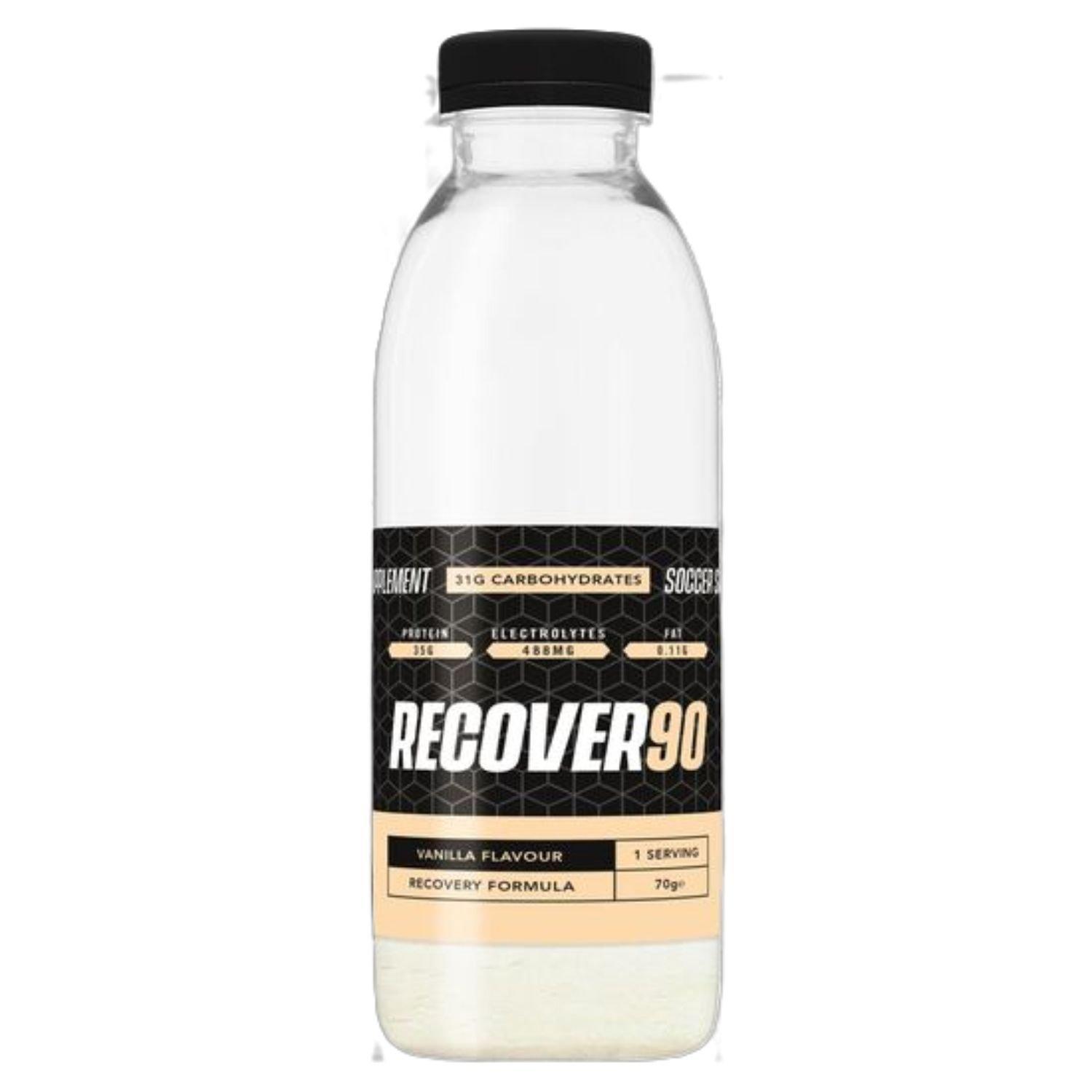 Speed up your recovery with Recover90, the ultimate post-match solution developed with Premier League nutritionists. This precise formula combines protein, carbohydrate, and electrolytes to provide a complete recovery solution. Each serving of our superior blend contains 33g of protein to repair muscles, 30g of carbohydrates to refuel muscle glycogen, and 486mg of electrolytes to support rehydration. Don't compromise on your recovery—get yours today and be ready for your next game.