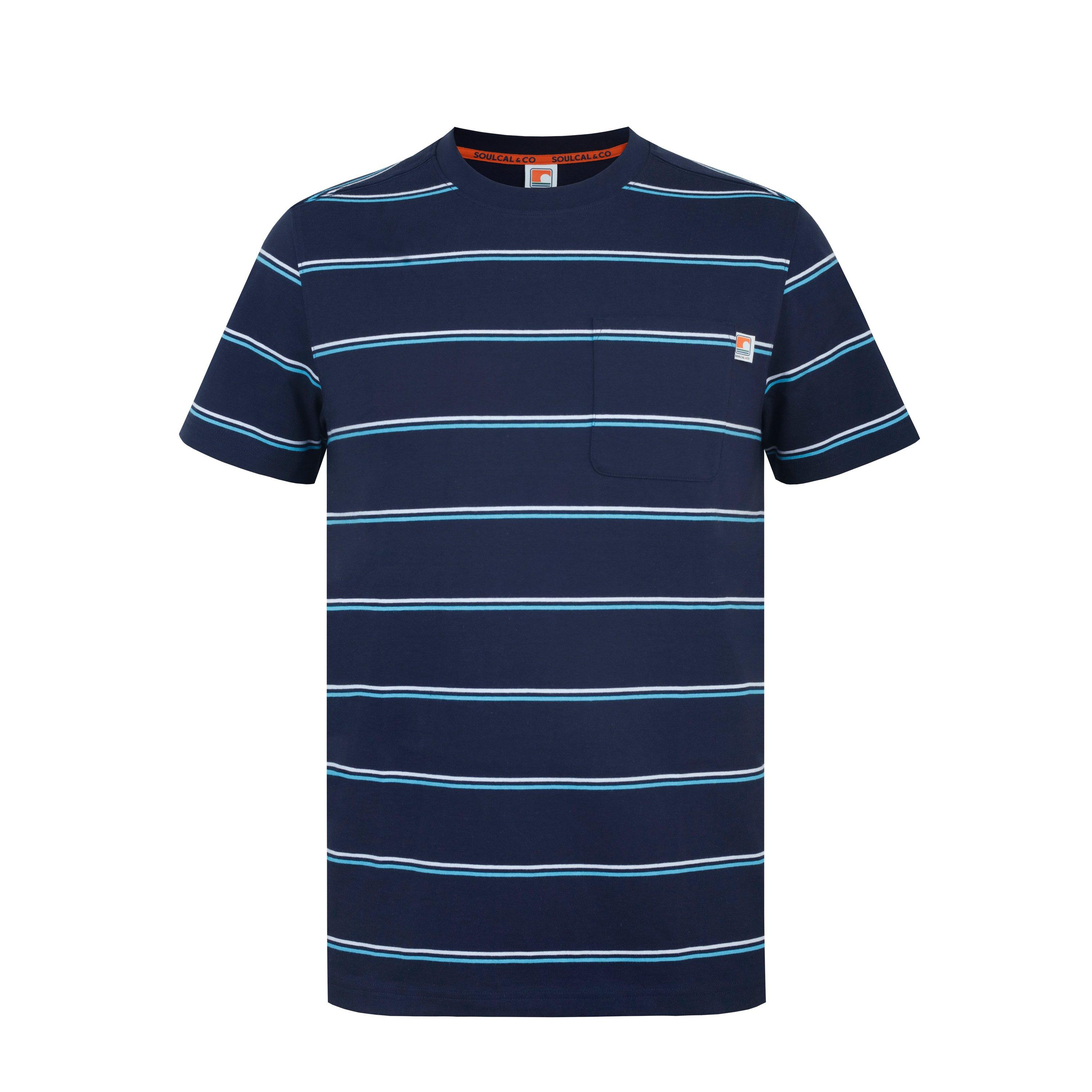 SoulCal's Soul Stripe Regular Fit Tee balances comfort with practical design, featuring a structured shape with clean proportions. This classic shirt showcases stripe detailing for everyday fashion appeal.