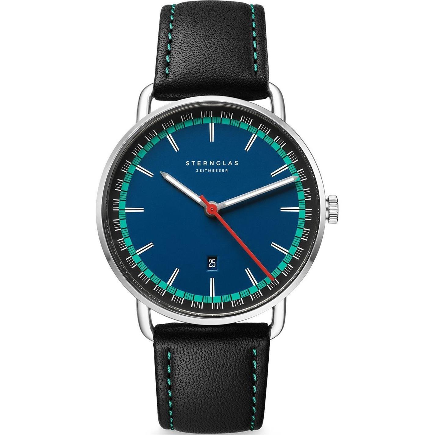 Sternglas Levin S01-LE06 is a functional and special Gents watch. Case is made out of Stainless Steel and the Blue dial gives the watch that unique look. In regards to the water resistance, the watch has got a resistancy up to 50 metres. It means it can be submerged in water for periods, so can be used for swimming and fishing. It is not recommended for high impact water sports. We ship it with an original box and a guarantee from the manufacturer.