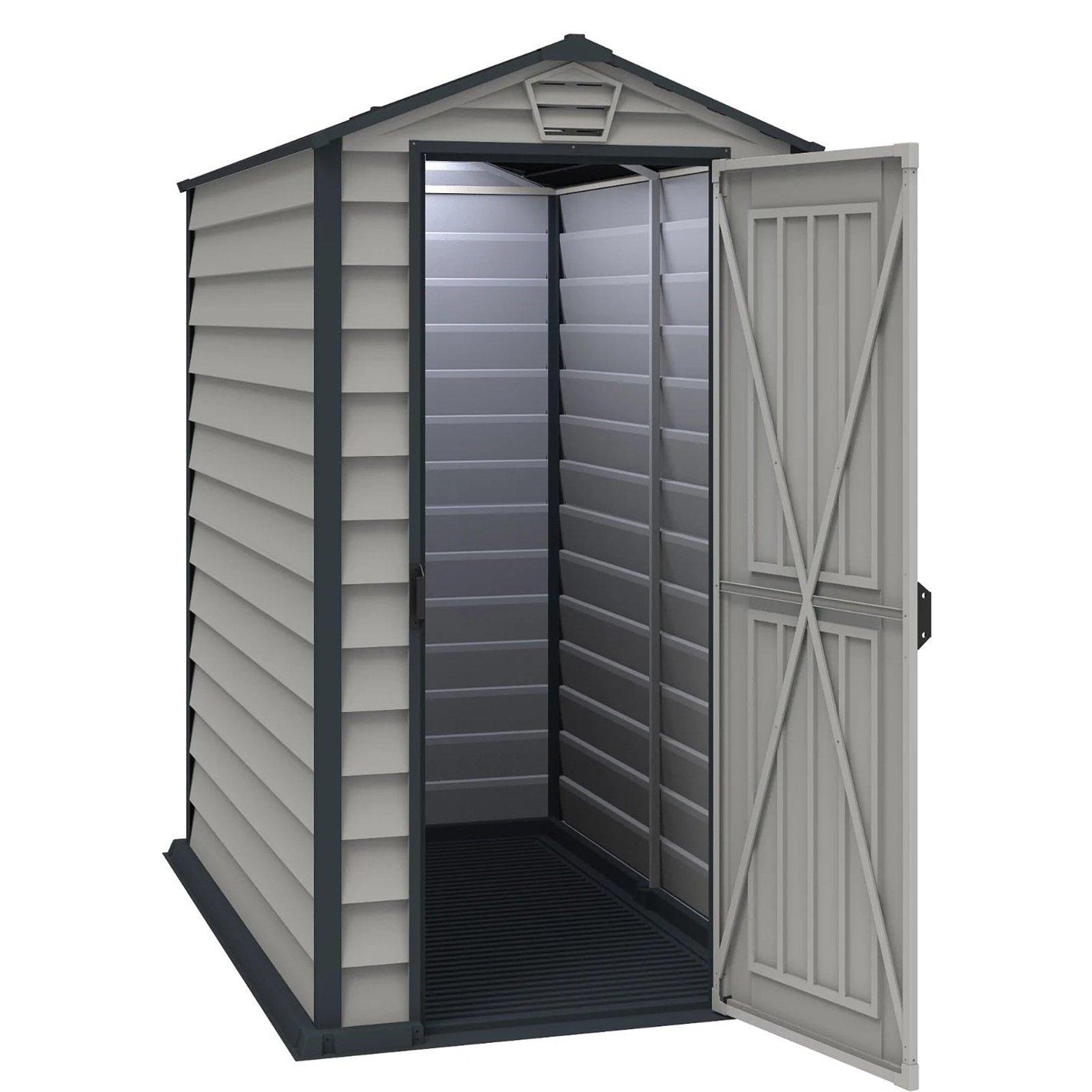 The Saffron apex plus is a great storage solution for any garden, made from strong and secure vinyl panels. The EverMore is also fire retardant and wind and snow resistant keeping all your belongings clean, dry and safe. This building is made from pre-assembled panels and has a floor included creating a building that is easy to install and requires little to no maintenance.