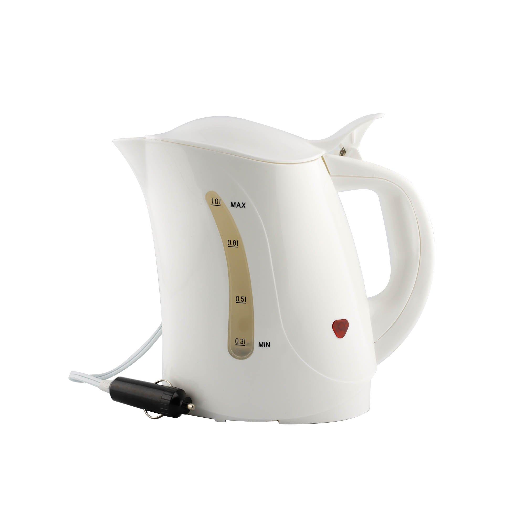 12v 1 Litre Travel Kettle Ideal for use when camping, caravanning and in cars, vans, trucks and boats Perfect for day trips Makes 3 cups Boils a full kettle in around 20 minutes